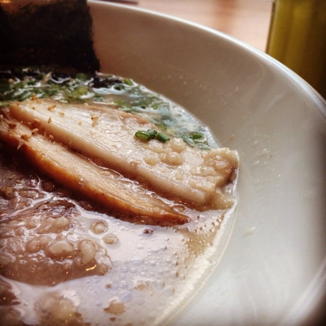 Ippudo เป็นร้านราเมงที่มีสาขาอยู่มากมายในหลายประเทศ และแล้ว ก็มาถึงที่ประเทศไทย ... ร้านดังขนาดนี้ ไม่ลองไม่ได้ซะแล้ว :)ช่วงนี้เพิ่งเปิดได้ไม่นาน ที่ Central embassy คนยังแห่ไปอยู่ทั้งคนไทยและคนญี่ปุ่น ^^ ไปถึง ให้ไปรับบัตรคิวที่พนักงาน และนั่งรอเรียกเบอร์ได้เลยนะคะ คนที่เขายืนต่อแถว คือเขารับบัตรเรียบร้อยแล้วน้า อย่าเผลอไปยืนต่อ โดยที่ยังไม่ได้รับบัตรละ :) ทางร้านใส่ใจลูกค้ามาก มีเก้าอี้ไว้ให้นั่งคอยเรียบร้อยจ้า วันนั้นเรารอ 20 กว่าคิว ก็เกือบๆชั่วโมงนะ :)เมนูมีไม่มาก แต่มีแต่เด็ดๆทั้งนั้นคร้า ราคาสำหรับเรา เราว่าทั่วไปนะ ราเมงธรรมดาๆ ไม่ได้ดัง หรือไม่อร่อย ก็ชามละ 200 แล้วเดี๋ยวนี้ :)การตกแต่งร้าน ทำได้เก๋ดี นั่งมองเพลินๆ ถ้ามากัน 2 คน จะได้นั่งแบบเคาท์เตอร์นะจ๊ะ เชฟอยู่ต่อหน้าเลย เสียงจะดังนิดนึง ตามแบบฉบับญี่ปุ่น เพราะเชฟจะคอยขานรับ พูดนู้นนี่ตลอดจ้าน้ำแบบรีฟิว มีเป็นชาเขียวค่ะ รสชาติดี ไม่ขม :)สั่งของมาทานเล่นก่อนเลย จานแรกเป็น salmon roll แซลมอนนุ่ม ละลาย ข้าวน้อยๆ ราดซอสกลมกล่อมดี ส่วนอีกจานเป็น Spicy Shrimp mayo เป้นกุ้งชุบแป้งทอดราดซอสมายองเนสที่ปรุงออกเผ็ดนิดๆ ตกแต่งจานได้อลังการมาก กุ้งทอดมากรอบ ไม่อมน้ำมัน และซอสราดที่อร่อยดีค่ะมาถึงราเมง สั่ง shiromaru special มาจ้า ชามนี้ 280 บาท แบบสเปเชียลคือใส่ทุกอย่าง ทั้งไข่ สาหร่าย และหมูชาชูจ้า ... ไข่ที่นี่จะมาแบบทั้งลูกเลย นิ่มมาก สุกนิดๆ เป็นยางมะตูมอร่อยฟุดๆ น้ำซุปชามนี้จะออกเค็มๆ เส้นเหนียวนุ่ม อร่อยมาก ให้เยอะ อิ่มฟุดๆ .. เส้นสามารถเลือกระดับการสุกได้ ว่าเอานิ่ม แข็ง หรือปกติอีกชามเป็น special จ้า น้ำซุบอันนี้จะเผ็ดกว่าชามแรก และเค็มน้อยกว่า ส่วนตัวเราชอบชามนี้มากกว่า แต่แฟนเราชอบชามแรกมากกว่า แหะๆ :)โดยรวมแล้ว ประทับใจร้านนี้มาก ทั้งบริการที่ดีมากๆ ถึงแม้คนจะเยอะก็ตาม พนักงานที่นี่มีทั้งคนไทยและคนญี่ปุ่น ใส่ใจลูกค้าดี ยิ่มแย้ม อาหารก็เร็ว รอไม่นาน เป็นร้านที่ต้องไปซ้ำอีกแน่นอนจ้า ปลื้มๆ แต่รอบสอง อาจรอคนซาลงก่อน อิอิ :)ปล. ร้านนี้ไม่มีซื้อกลับบ้านนะคะ เพื่อคงความอร่อยไว้ :)…Read More