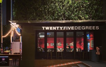 รีวิวนี้ จะพาไปกินเบอเกอร์อร่อย ๆ กับอาหารอีกหลากหลายอย่าง พร้อมเครื่องดื่มเก๋ ๆกันที่ 25 Degrees Burger Wine and Liquor Barในบรรยากาศแบบผับ บาร์ สไตล์อเมริกัน กันครับ25 Degrees Burger Wine and Liquor Barตั้งอยู่บริเวณด้านหน้าของโรงแรม Pullman G Silomเห็นชัดเจนเลยครับ ไม่มีทางพลาดเป้าหมาย ซึ่งถ้าใครขับรถมา ก็สามารถจอดได้ที่โรงแรมแล้วเดินเข้าร้านที่ล็อบบี้ของโรงแรมได้สะดวกบรรยากาศภายในร้าน โต๊ะ ที่นั่ง ก็ตกแต่งออกมาในโทนสีแดง และเป็นสไตล์อเมริกันมาก ๆประดับผนังด้วยรูปภาพเก๋ ๆ โทนขาวดำตัดกับสีแดงของผนังได้โดดเด่น25 Degrees Burger Wine and Liquor Barจะมีกิจกรรมแข่งขันกินกันอยู่เรื่อย ๆ ด้วยครับ ส่วนที่ผมมารีวิวนั้น จะเป็นตัวดิสเพลย์ตัวนี้เลย"What a Mess Burger" ที่เป็นเบอเกอร์พิเศษเฉพาะเดือนพฤษภาคม-มิถุนายน นี้เท่านั้นครับงั้นเดี๋ยวเรามาเริ่มชิมกันเลย ว่าเมนูพิเศษจะมีอะไรเป็นส่วนประกอบบ้างและเมนูเด็ดเมนูอื่น ๆ มีอะไรบ้างครับสตาร์ทเบา ๆ ด้วย VEDETT EXTRA Whiteเป็นเบียร์สดด้วยครับตัวนี้ หอม สดชื่นดีเลยรสลื่นคอ ดื่มง่ายครับส่วนคนรักมิลค์เชค ก็ต้องลอง 3 แก้วนี้เลยTang & Creamyมิลค์เชค รสไอศกรีมวนิลา ผสมน้ำส้มสดและแยมส้ม เลิศในความสดชื่น Cookie Monsterมิลค์เชค ที่ผสมบราวนี่กับไอศกรีมนมและคุ้กกี้แอนด์ครีม จัดหนักจัดเต็มเลยBreakfast on Topมิลค์เชคฉบับเครื่องเพียบ ไม่ว่าจะเป็นวาฟเฟิลกล้วยหอมสไลด์ นมปั่นผสมกะทิและไอศกรีมวนิลารวมอาหารเช้าในแก้วเดียวกันเลย หรือถ้าคอ Cocktail หรือ Mocktailแก้วนี้ก็ดีครับ นิวยอร์คโซดา รสราสเบอร์รี่จะเลือกแบบใส่แอลกอฮอล์หรือไม่ก็ได้ครับ Liefmans Fruitesse on the rockแก้วนี้ สาว ๆ น่าจะชอบกันนะครับ เหมาะเรียกน้ำย่อยเป็นเบียร์ผลไม้ฟองฟู่คล้ายสปาร์คกลิ้งไวน์แบบว่า ชาย VEDETT หญิง Liefmans Fruitesseก็คงจะเหมาะกันดีครับ 555 จากเครื่องดื่ม เรามาเข้าเรื่องของกินบ้างครับขนมปังอบใหม่ ๆ เป็น complimentary ของร้านมี 3 แบบด้วยกัน และอร่อยใช้ได้เลยล่ะChopped Vegetable สลัดน้ำข้นคล้ายมายองเนสกับผักนานาชนิดที่หั่นมาพอดีคำโรยชีสด้านบน กินมันส์มากครับ ผักจานนี้Curly Fries กรอบอร่อย มากันเป็นถังบัฟฟาโล่ วิงส์ น่องปีกไก่สไตล์อเมริกันทอดราดซอสบาร์บีคิวสูตรเฉพาะ รสเด็ดมาก"What a Mess Burger"มาแล้วครับ เบอเกอร์พิเศษสุดพรีเมียมขนาดเบอเกอร์สูงประมาณ 5.5" - 6" ที่เสิร์ฟมาพร้อมกับเฟร้นไฟรส์ชีสเรามาดูกันครับ ว่าเบอเกอร์อลังการขนาดนี้จะมีอะไรเป็นส่วนประกอบกันบ้าง "What a Mess Burger" นั้น ประกอบไปด้วย เนื้อเบอเกอร์เซอลอยด์หวานนุ่มชุ่มฉ่ำ มาพร้อมเนื้อหมูสามชั้นคุโรบูตะทอด เบคอนกรอบ ๆ และไข่ดาวไข่แดงไม่สุกแบบเยิ้ม ๆ ใส่หอมใหญ่ผัดจนสุกนิ่ม และผักต่าง ๆ ประกบกันอยู่ในขนมปังเบอเกอร์ที่ฟู