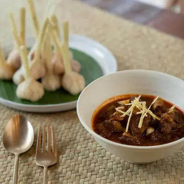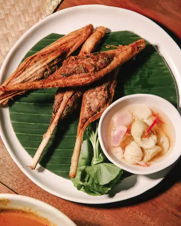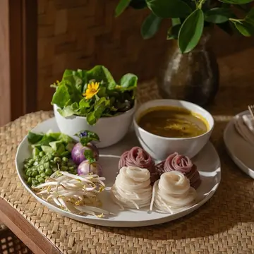 Khao Yum (Southern style Thai rice salad) / Deep-fried Bresse chicken marinated in Sukothai fish sauce / Kanom Jeen Namya / Gai Yadsai Takrai / Signature Tea Cocktail