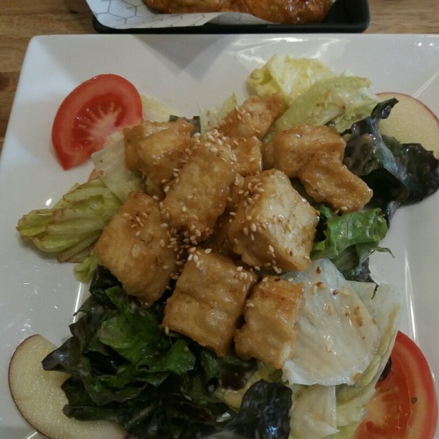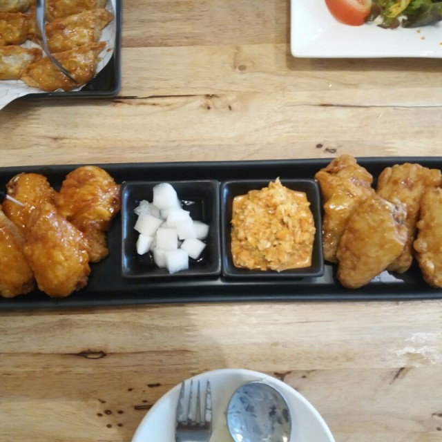 - ปีกไก่บอนชอน Size S 150 บาท แบบซอยการ์ลิค เลือกทานคู่กับ กิมจิโคลสลอว์ เสริฟพร้อมหัวไชเท้าดองไก่ทอดมาได้สุกดี รสกระเทียมหอมๆเค็มๆ ทานแล้วมันดีค่ะ อร่อยๆ ส่วนกิมจิโคลสลอว์ ก็ใช้ได้ค่ะ ชุ่มๆน้ำ ได้รสกิมจิด้วย อร่อยดี แต่ส่วนตัวรู้สึกว่าเปรี้ยวไปนิดนึงค่ะ ส่วนหัวไชเท้าดองกรุบกรอบดี ทานเพลินๆรวมๆกัน ก็เข้ากันดีค่ะ- ปีกไก่บอนชอน Size S 150 บาท แบบฮอท เลือกทานคู่กับ ข้าว เสริฟพร้อมหัวไชเท้าดองไก่ทอดมาดีเช่นกัน ซอสมาอย่างชุ่มๆ รสออกเผ็ดนำมีหวานเค็มตาม ควรทานคู่กับข้าวมากๆค่ะ เพราะว่าทานเปล่า เราว่าเผ็ดเค็มไปนิดนึง ข้าวก็เหนียวนุ่มดี ทานหมดก็อิ่มเลย- สลัดซีซาร์และหนวดปลาหมึกทอดกรอบ 190 บาท หนวดปลาหมึกเค็มๆมันๆอร่อยอ่ะ อยากได้เยอะๆเลย ชอบๆค่ะ ส่วนน้ำสลัดเปรี้ยวไปหน่อย ทำให้รสชาติโดดๆไปนิดนึง ผักสดกรุบกรอบ จานนี้หอมชีสดีค่ะร้านนี้มีหลายสาขา ไปจัดไปโดนกันนะจ้า…Read More