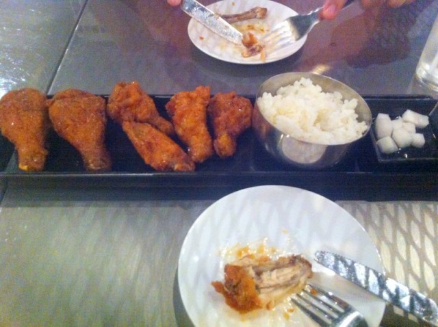 เรื่องไก่ทอดอร่อยๆต้องยกให้บอนชอนเลย บางวันเบื่อข้าวก็เลยเลือกกินบอนชอนค่ะ โดยเราสั่งชุดเล็กเป็นปีกไก่กับน่องไก่จำนวน 6 ชิ้น เสิร์ฟพร้อมกับข้าว เราสามารถเลือกรสชาติของไก่ได้ระหว่างฮอตหรือการ์ลิก เราว่าอร่อยดีค่ะแล้วก็อิ่มด้วยราคาโอเคเหมาะกับบางวันที่อยากทานอะไรไม่หนักมาก…Read More