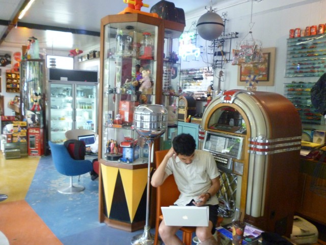 มื้อเย็นทานส้มตำแถวหน้าร้านนี้แซ่บปากเจ่อแล้วก็เข้ามานั่งดับร้อนในร้านนี้ บรรยากาศร้านน่ารัก แบบว่าของสะสมเยอะๆ ทีเดียว โน่นนิด นี่หน่อย ของแบบเก่าๆก็มี แต่งเก๋ๆ อ่ะแบบเยอะๆ สั่งแล้วก็ไปนั่งด้านหลังเป็นสวนยามค่ำคืนใต้แสงเทียน กับ บราวนี่ 35 บาท ชิ้นนี้ ไม่แพงเลย วันนี้ให้เค้าอุ่นมาให้ เลยนุ่มพอสมควร แต่หน้าก็จะเริ่มไปละ รสชาติอร่อยเข้มข้นดี มีแมคคาเดเมียด้วย …Read More