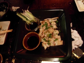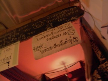เพิ่งเคยมาเดินเป็นครั้งแรกในชีวิต หลังจากที่ฟังคนอื่นร่ำลือมานาน ยาววววจริงๆ) จุดหมายอยู่ที่วัดพระสิงห์ ไม่ได้ไปวัดค่ะ แต่จะเดินเล่นให้สุดถนนคนเดิน ให้ท้องเริ่มหิวโหยเรียกหาอาหาร จะได้ขึ้นรถจากที่นี่เพื่อตามล่าหาของอร่อยกินกันต่อไป วันนี้ร้านอาหารเป้าหมายของเราอยู่ที่ นิมมานเหมินท์ซอย 11 เราจะนั่งรถแดงไปกันค่ะ ส่งถึงหน้าร้านเลยคนละ 20 บาท ชักติดใจรถแดงเชียงใหม่ซะแล้วสิ ถูก แล้วก็แทบจะไม่ต้องรอ มีรถแดงผ่านไปผ่านมาตลอดเวลา และที่สำคัญไม่ต้องจำไม่ต้องศึกษาสายรถเมล์ว่า สายนี้ไปไหนๆ ใช้ปากบอกอย่างเดียวเลยค่ะ สบายยยย แพงกว่ารถเมล์เล็กน้อย ดีกว่าเช่ารถขับให้ GPS พาอ้อมหลงวกวน สะดวกเท่าเทียมกับนั่งแท๊กซี่ในกรุงเทพ แต่ถูกตังค์กว่าเยอะ ร้านตั้งอยู่กลางซอย 11 ค่ะ สังเกตุป้ายไปสีเหลืองหน้าร้าน ถ้าขับรถมาก็จอดรถที่ริมถนนในซอยได้ เพิ่งรู้ว่าร้านอาหารแถวนี้เยอะแยะมากมาย เด็ก มช มาทำให้เศรษฐกิจที่นี่คึกคักจริงๆ ทุกซอยมีแต่ร้านอาหารสวยๆ น่านั่งทั้งนั้น ฉันว่าอยู่เชียงใหม่สองเดือนยังกินร้านอาหารแถวนี้ได้ไม่ซ้ำร้านเลย Hatena เป็นร้านอาหารญี่ปุ่นเล็กๆ ขนาดห้องแถวห้องเดียว บรรยากาศอบอุ่นในแสงสลัว (ถ่ายรูปอาหารยากมาก) ตกแต่งง่ายๆ สบายๆ มีโต๊ะในร้าน และด้านนอกประมาณ 8 โต๊ะ เข้าไปนั่งในร้านถึงรู้ว่าร้านนี้มีสาขาที่ย่าน ชินไซบาชิ โอซาก้า ดูดีขึ้นมาอีกหนึ่งสเต๊ปท์ มั่นใจได้ว่าต้องได้รสชาติอาหารญี่ปุ่นแท้ๆ แน่วันนี้ ลายโต๊ะ เมนูมีแผ่นเดียวหน้าหลัง ชอบร้านที่มีรายการอาหารไม่เยอะค่ะ มีเยอะก็เลือกนาน มีน้อยก็เสียเวลาเลือกน้อยลง สลัดปลาดิบรวม 150 บาท ร้านมืดมากค่ะ ต้องใช้แฟลชช่วยบางรูป มาในชามอ่างใหญ่ จุใจ ผักเยอะเนื้อปลาดิบเยอะ คุ้มเกินราคาค่ะ อีกทั้งยังอร่อยมาก กินเพลินๆไปถึงด้านล่าง โอ้ย น้ำหูน้ำตาไหล วาซาบิตกลงไปนอนก้นอยู่ที่ด้านล่างกินไปกุมขมับกันไป ในที่สุดก็ต่างฝ่ายต่างยกมือยอมแพ้ ต้องทิ้งให้เนื้อผักที่อยู่ก้นจานเหลือไว้อย่างนั้น ซ่าจิ๊ดขึ้นสมองเลยค่ะ ใครไม่ชอบวาซาบิ ถ้าสั่งจานนี้ต้องบอกพนักงานไปเลยนะคะว่า วาซาบิเล็กน้อยอย่าเยอะๆ ซุปกิมจิ อันนี้เป็นเมนูใหม่แปะกระดาษติดเพดานร้านไว้ก็เลยสั่งมาลองดู 100 บาท มาชามอ่างใหญ่เช่นกันค่ะ จานนี้สำหรับฉันรสชาติไม่ผ่าน เพราะชินและคาดหวังกับรสชาติของซุปกิมจิแบบเกาหลี แต่รสชาติของที่นี่มาแบบหวานเค็มค่ะ ไม่ใช่แนวเลยจริงๆ (อันนี้รูปไม่สวย ไม่เหมาะจะเอามาลงค่ะ ขออภัยค่ะ)สเต็กเนื้อ Japanese style 280 บาท อร่อยๆๆๆๆสั่ง medium ได้ medium ถูกใจมากมายค่ะจานนี้ เนื้อ