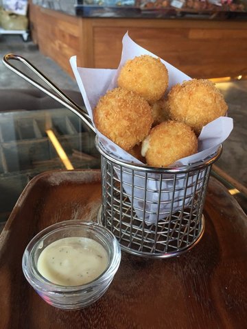 ร้านนี้ตั้งอยู่ชั้น 3 ของตึก I'm Park ค่ะ ที่นี่มีร้านอาหารร้านขนมน่าสนใจหลายร้านเลยค่ะ คนเดินไม่เยอะเท่าไหร่ เดินสบายๆ แต่ละร้าน มีที่นั่งให้ทานชิวๆเยอะดี ถ้าใครรู้จักตลาดสามย่าน ให้เดินเลยมาอีกประมาณนึงค่ะ ตึกนี้อยู่ฝั่งเดียวกับตลาดสามย่านค่ะ เห็นร้านดูน่านั่งดีค่ะ เลยลองเข้ามาทานสักหน่อยค่ะ- ชีสบอล 85 บาท เสริฟมากับภาชนะน่ารัก มีดิปให้จิ้มด้วย กรอบนอกนุ่มใน พอใช้ได้ค่ะ กัดไปจะเจอชีส แต่ชิ้นไหนโชคไม่ดี ชีสอาจหาย T_T ก็ไม่รู้เพราะคำที่เรากัดเข้าปากเอาชีสไปหมดหรือเปล่า ถ้าเป็นแบบนั้น ก็รู้สึกว่าบางลูก ชีสน้อยจังค่ะ ส่วนดิ๊ปออกเปรี้ยวนิดๆ ทำให้เมนูนี้ไม่เลี่ยนเกินไปค่ะ - คาโบนาร่า 195 บาท จะเป็นเส้นแบบแบน มาพร้อมเห็ดและกุ้งตัวใหญ่พอประมาณ เสริฟมาบนจานไม้ มองๆไปเหมือนเขียงเลย (ถ้ามีมีดนี่จะสับหมูแล้วนะ 55) น่ารักดีค่ะ ชอบๆ แต่พอทาน รู้สึกเส้นค่อนแข็งไปหน่อยค่ะ รสชาติไม่เข้มข้น ออกจืดๆ ยิ่งเส้นใหญ่อีก ทานแล้วได้แต่รสแป้งของเส้น ทานไปได้สองคำ เลยเดินไปตามหาพริกไทย แต่พนักงานบอกว่าไม่มี เศร้าจัง เลยต้องกลับมาทานต่อ แต่แบบมันจืดเกินจะทานหมด ก็เลยทานแต่กุ้งกับเห็ด ส่วนเส้นทานไปได้เกือบครึ่งนึงด้วยอารมณ์หิว - Green Peach Soda 125 บาท เป็นเครื่องดื่มที่ผสมระหว่าง น้ำมะพร้าว เมล่อน และมะนาว รสชาติหวานนำ มีความหอมของเมล่อน มีเปรี้ยวเบาๆตอนกลืน ส่วนโซดามาแบบจัดเต็ม ลองคนๆและทาน ดีขึ้นหน่อย แต่รู้สึกว่าโซดาเยอะกว่าผลไม้เกินไปหน่อยค่ะ กับราคาประมาณนี้ น่าจะเข้มข้นกว่านี้หน่อยค่ะ เพราะเคยทานร้านอื่นราคาเดียวกัน รสชาติเข้มข้นจนติดใจเลยค่ะ แก้วนี้ยิ่งปล่อยไว้ ความเข้มข้นยิ่งจางลงเลยค่ะ เหมือนทานน้ำโซดาเลยค่ะ >.< ราคาไม่รวมอะไรเพิ่มแล้วค่ะ บรรยากาศที่นี่ชิวดีค่ะ มีผู้ปกครองนั่งอ่านหนังสือ คุณลูกติวหนังสือกะเพื่อน อีกโต๊ะนั่งทำคอมคุยงาน ร้านเปิดเพลงฟังสบายๆดี ส่วนเรานั่งมองคนอื่น อ๊ะ! ไม่ใช่