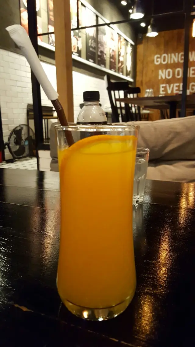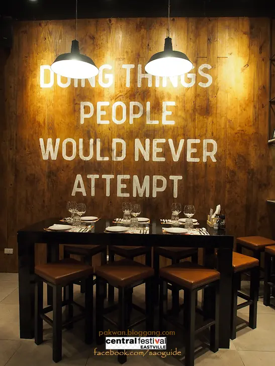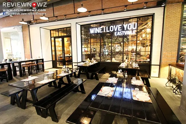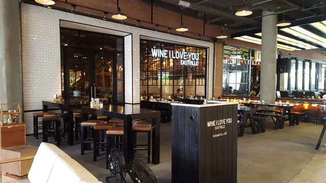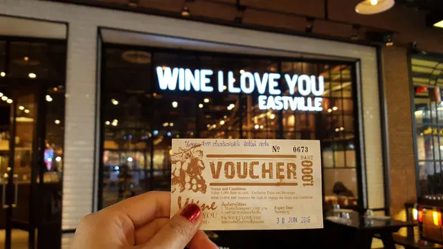 พอดีมีวอยเชอร์อยู่ 1,000 บาท ของร้าน Wine I love you แต่ที่วอยเชอร์เขียนบังคับไว้ว่าใช้ได้เฉพาะที่สาขา Central plaza East Ville เท่านั้น ฉะนั้นเราก็ต้องถ่อไปที่ east ville เลยจ้า การเดินทางไปสำหรับคนไม่มีรถส่วนตัวและเมารถแท็กซี่อย่างเราก็มีวิธีเดียวเท่านั้นคือรถเมล์!!! 555 แต่ก็ไม่ได้เดินทางอะไรลำบากนะคะ เรานั่งสาย 8 ไปลงที่บิ๊กซี ลาดพร้าว หรืออิมพีเรียลเก่านั่นเอง แล้วข้ามสะพานลอยมาฝั่งตรงข้ามบิ๊กซี ขึ้นรถเมล์สาย 95 มีสายเดียว แล้วรถเมล์ก็จะไปจอดป้ายที่หน้าเทสโก้โลตัส ซึ่งอยู่ข้างๆ กับ Central Plaza East Ville นี่แหละคร่าาาาา อ้อ นอกจากรถเมล์สาย 95 แล้วก็มีรถสองแถวค่ะ แต่ขาไปเราไม่เจอนะคะ เราเจอขากลับออกมา มาลงข้างบิ๊กซีเลยค่ะ น่าจะเป็นซอยลาดพร้าว 81 นะคะถ้าจำไม่ผิดส่วนร้าน Wine I love you ที่เราจะไปกินในวันนี้ อยู่ที่ชั้น 1 เลยค่ะ เดินเข้าห้างไปนิดหน่อย ตรงๆ เข้าไป ร้านจะอยู่ทางขวามือ ก่อนทางเข้าห้องน้ำค่ะ ร้านจะดูออกสไตล์เป็นร้านอาหารกึ่งผับ ประมาณนั้นอ่ะค่ะ ออกสลัวๆ นิดหน่อย มีไวน์ให้เลือกดื่มมากมาย มีโต๊ะให้เลือกนั่งได้ทั้ง indoor และ outdoor ในส่วนของ outdoor ก็มีโต๊ะไม่มากเท่าไหร่ค่ะ เป็นบริเวณที่ไม่มีแอร์นะคะ เป็นอากาศธรรมชาติ เราว่าเหมาะกับช่วงเย็นๆ ถึงค่ำอ่ะค่ะ อย่างเราไปตอนเที่ยง ไม่ค่อยเหมาะเท่าไหร่นะคะ เราเลือกเลือกไปนั่ง indoor แทน นั่งตากแอร์เย็นๆ นั่งบนเก้าอี้เบาะนุ่มๆ สบายที่สุดเลยค่ะ เมนูอาหารของร้านนี้มีหลายแนวมากเลยค่ะ ทั้งไทย อเมริกา เม็กซิโก บลาๆๆๆ ตามเมนูเลยค่ะ จากที่เคยกินที่ร้านนี้แต่เป็นที่ Groove แล้วติดอกติดใจเลยสั่งเหมือนเดิมคือ ข้าวคลุกกะปิ แซลม่อนแซ่บ และ ปลาหมึกทอดคลุกพริกมะนาว ราคาของทั้งสองสาขาแตกต่างกันบ้างนะคะ และที่เรามาสั่งเพิ่มเติมคือ กระเพราหมูกรอบเยอรมัน และพายซุปครีมเห็ด ส่วนเครื่งดื่มก็เป็นน้ำส้มและน้ำเปล่าค่ะมาดูแต่ละเมนูดีกว่าค่ะ อย่างแรกที่มาเสิร์ฟคือเครื่องดื่มค่ะ เป็นน้ำส้มเย็นไม่มีน้ำแข็ง จิบแล้วได้เนื้อส้มมาเต็มๆ รสชาติดีค่ะ หวานๆ อีกอย่างที่เราสั่งคือน้ำเปล่า เป็นขวดใสฉลากสีดำ มีชื่อร้านอยู่บนฉลาก เราชอบขวดเขานะคะ ดูคลาสสิคดี 555 แต่ไม่มีน้ำแข็งมาให้ค่ะ ก็กินแบบน้ำเย็นๆ แค่นั้นค่ะส่วนเมนูแรกที่มาเสิร์ฟเลยค่ะ แซลม่อนแซ่บ แซ่บบบบบบบบบบบ จานมาเล็กๆ เนื้อแซลมอนแล่ เรียงบนผักหลากหลายชนิด วางบนด้วย สะระแหน่ ยอดอ่อนทานตะวัน และไข่ปลาแซลมอน ราดด้วยน้ำจิ้มรสแซ่บ เปรี้ยว เผ็ด เค็มกำลังดี แซ่บได้ใจเลยค่ะเมนูถัดมาคือปลาหมึกทอดคลุกพริกมะนาว เสิร์ฟมาใน... จะเรียกว่าอะไรดี ลักษณะเหมือนกรวยเลยเนอะ เป็นปลา