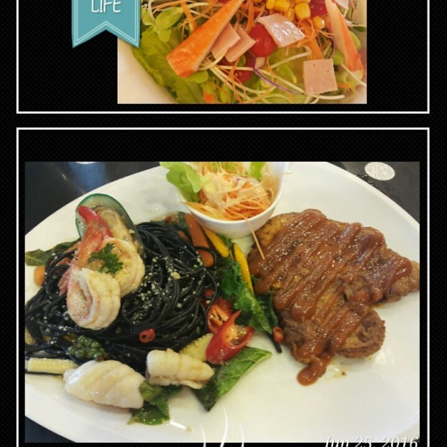 ร้านอาหาร nuti เป็นร้านอาหารที่เน้นไปทางด้านอาหารตะวันตกพวก steak ร้านตั้งอยู่แถว impactอันแรกนี้เป็น steak หมู กับกุ้ง พริกไทยดำ รสชาติของสเต็กหมูข้างในลักษณะจะเป็นก้อนๆ เนื้อหมูชิ้นโตๆ เนื้อหนาเหนัยวอยู่พอสมควร เนื้อก็ไม่หยาบจนเกินไปให้รสชาตินุ่มๆเนื้อหมูอยู่ พริกไทยดำกลิ่นหอม ชวนทานมากเรย ส่วนกุ้งนั้นตัวก็ขนาดใหญ่ได้เรย เนื้อกุ้งในแต่ละตัวก็แน่นๆ อันนี้พริกไทยดำเข้าเนื้อจริงๆ อร่อยกว่าหมูอีกการบริการพนักงานค่อนข้างเอาใจใส่ มีความกระตือรือร้นในการบริการมากๆเรย ร้านน่านั่งแอร์เย็นสบายดี …Read More