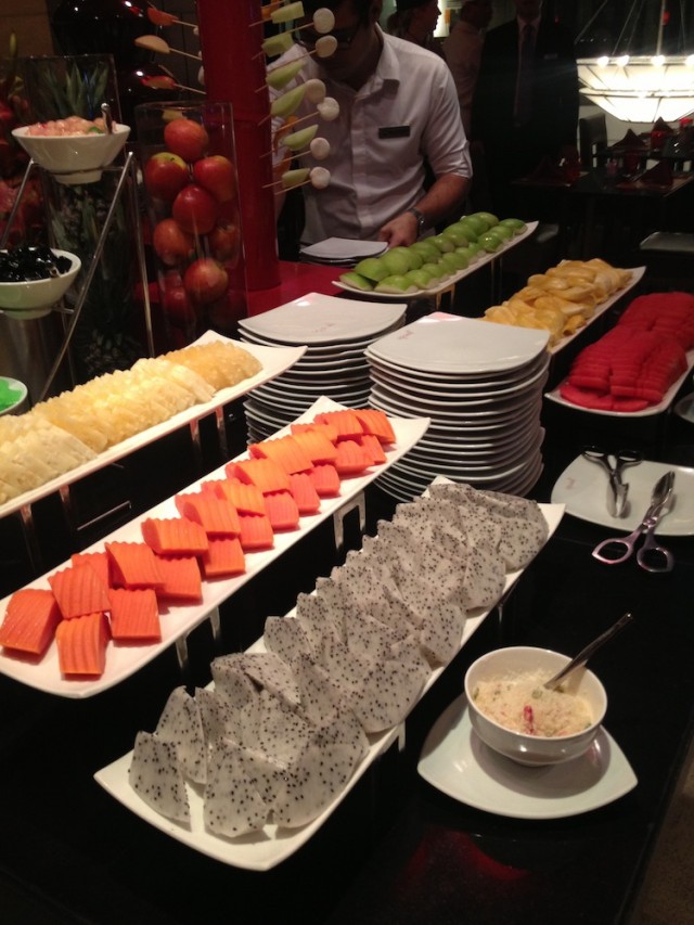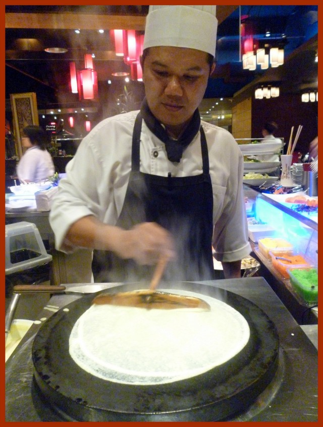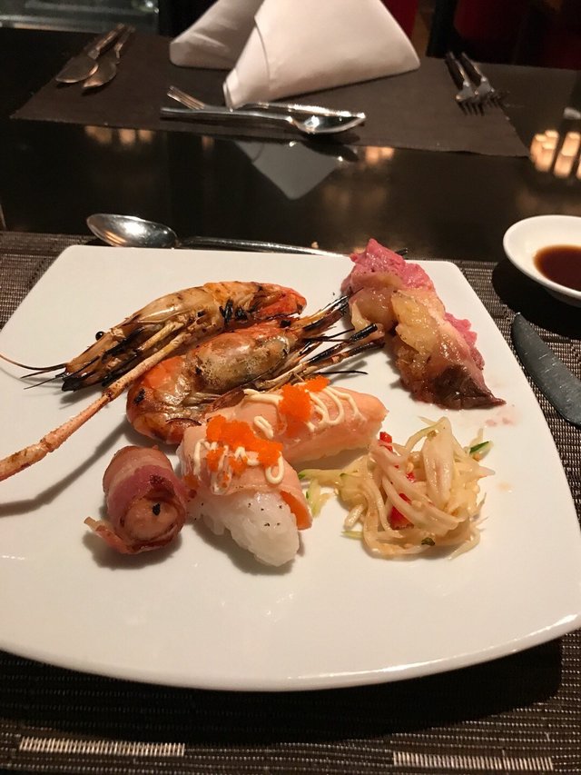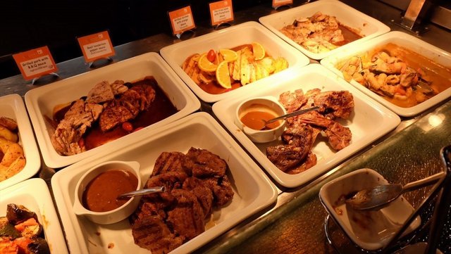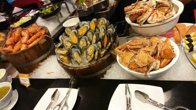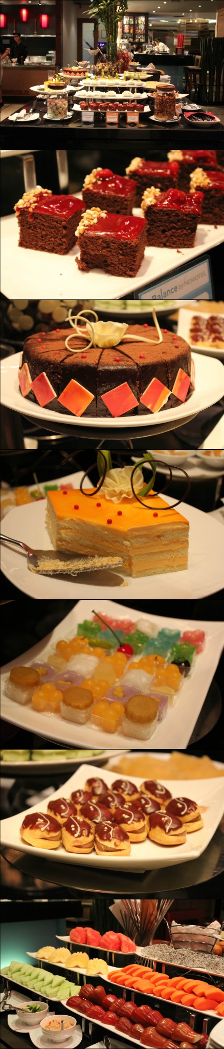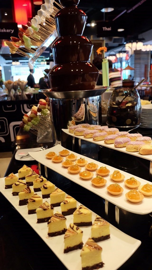 วันนี้จะพาไปกินอีกหนึ่งซันเดย์บรั้นช์ในรร.นะคะ กับรร.โนโวเทลสยามสแควร์นั่นเองงงงง ให้ดูภาพรวมของที่นี่ก่อนแล้วกันนะคะ สำหรับพิกัด รร.โนโวเทลสยามจะอยู่สยามสแควร์นะคะ เยื้องไปทางฝั่งอังรีดูนังค์ค่ะ วันนั้นเราวิ่งไปจากทางอนุเสาวรีย์ พอเลยแยกสยามฯ เลี้ยวซ้ายเข้าสยามสแควร์ซอย 7 รับบัตรจอดรถ (นำไปประทับตราที่รร.ได้นะคะ) แล้วก็วิ่งตรงไปเรื่อยๆ เลยสยามสแควร์วันไปก็จะเห็นอาคารรร.สีเหลืองๆ ทางซ้ายมือแล้วค่ะ ทางเข้าลานจอดรถอยู่ข้างรร.เลย (หันหน้าเข้ารร. เป็นซอยทางขวามือค่ะ) หลังจากจอดรถเรียบร้อยแล้วก็เดินขึ้นไปที่ล็อบบี้ค่ะ ตัวห้องอาหารเดอะสแควร์จะอยู่ที่ชั้น 2 ของโรงแรมนะคะ สำหรับราคาซันเดย์บรั้นช์ที่นี่จะเป็น 1350++ เริ่มตั้งแต่เวลา 12.00-15.30 น. นะคะ เด็กอายุ 6-13 จ่ายครึ่งราคา ต่ำกว่า 6 ขวบ กินฟรีค่ะ ไปถึงก่อนเที่ยงเล็กน้อยค่ะ นั่งรอหน้าห้องอาหาร คนรอเยอะมาก แต่มีทั้งรอกินซันเดย์บรั้นช์และรอเข้าห้องอาหารจีนนะคะ พอถึงเวลาก็เข้าไปในห้องอาหารค่ะ เป็นห้องอาหารแบบเพดานค่อนข้างต่ำตามแบบรร.สมัยก่อนแหละนะคะ ที่นั่งกระจายตามขอบของห้องอาหาร และไลน์อาหารจะอยู่ตรงกลางห้องค่ะ อุปกรณ์บนโต๊ะนะคะ ไปดูกันนะคะว่ามีอะไรบ้างค่ะ เริ่มต้นด้วยไลน์เครื่องดื่มเลย บุฟเฟต์ที่ไหนรวมเครื่องดื่มให้ด้วยคือดีงาม แฮร่... ถัดไปเป็นไลน์ของหวานค่ะ มีทั้งเครปแบบทำให้ร้อนๆ เลือกท็อปปิ้งเองได้ และไอศกรีมซึ่งวันนั้นมีให้เลือกสองรสชาตินะคะ มีชากาแฟให้ด้วยนะคะ ไลน์ต่อไปจะเป็นส่วนของพวกยำต่างๆ นะคะ มียำทูน่า น้ำพริก ยำไก่กรอบ ซี่โครงหมูทอดและยำเซี่ยงไฮ้ค่ะ ผลไม้ค่ะ ชอบที่มีลำไยและกล้วยไข่ด้วยยยย ซุ้มต่อไปจะเป็นแนวอาหารอิตาเลียนนะคะ มีพิซซ่าและพาสต้าค่ะ ซุ้มนี้จำไม่ได้แล้วว่าเป็นเนื้อหรือหมูนะคะ เมนูฮอทดิชค่ะ มีทั้งข้าวและกับข้าวต่างๆ นะคะ มีทั้งไทยๆ และฝรั่งค่ะ ต่อไปเป็นมุมขนมหวานนะคะ มีทั้งขนมฝรั่งและไทยเช่นกัน ส่วนอีกฝั่งจะเป็นช็อกโกแลตฟองดูว์นะคะ ต่อไปจะเป็นอีกหนึ่งเมนูที่ไม่ควรพลาดนะคะ กับสเตชั่นกริลล์ ซึ่งมีฟัวร์กราส์อยู่ด้วยค่ะ ถ้าไม่กินฟัวร์กราส์ก็มีหมู แกะ และไก่ค่ะ สำหรับการสั่งก็เอาเบอร์ที่โต๊ะมาแล้วก็ติ๊กในใบดังกล่าวนะคะ แต่ต้องเช็คดีๆ ค่ะ เพราะบางเมนูไม่มีในซันเดย์บรั้นช์นะคะ มีสำหรับดินเนอร์ค่ะ สอบถามพนักงานเอาแล้วกันนะคะ อย่างวันที่เราไปวันนั้นไม่มีกั้งกับเนื้อวัวค่ะ ใกล้ๆ กันจะมีข้าวผัดและกะเพราด้วยค่ะ แต่ไม่ได้ชิมเลยง่ะ แหะๆ ต่อไปไปดูที่ไลน์ตรงกลางห้องกันบ้างค่ะ มีแซลม่อน และซีฟู้ดต่