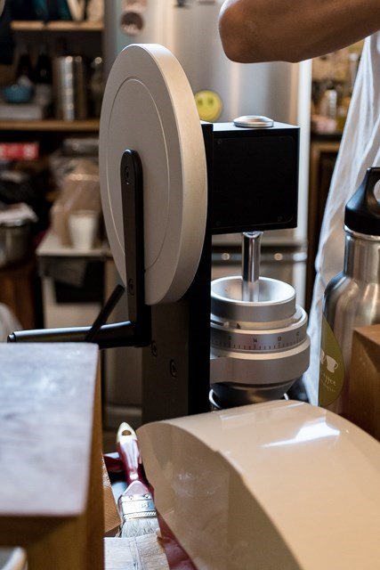 แต่เจ้านี้เค้าใข้เครื่องบดมือหมุนตัวพ่อแพงเว่อร์ของ ลินด์เวบเบอร์ Lyn Weber รุ่น HG-1 ที่ใช้ฟันบดเหมือนกับเครื่องบดสำหรับเอสเพรสโซ่ชื่อดัง มาสเซอร์ ร็อบเบอร์ (Mazzer Robur) ตอนออกมาใหม่ดังระเบิดเถิดเทิงมากทำไม่ทันออร์เดอร์เลยทีเดียว