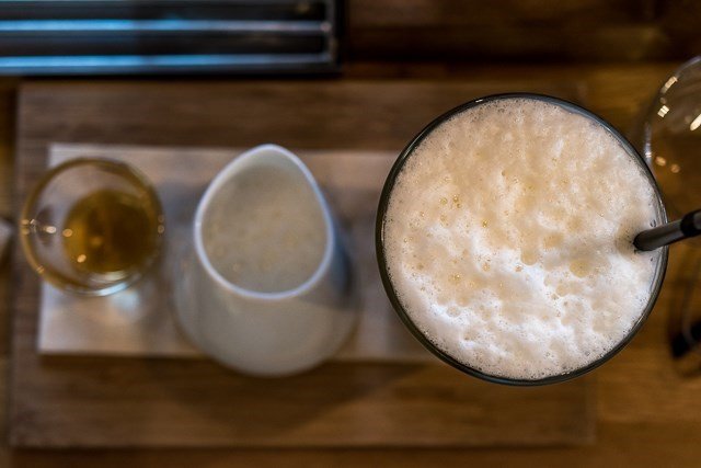แต่ทานวิธีนี้ประดักประเดือกมาก บาริสต้าเลยแนะนำให้คนเจลลี่ให้ผสมกับนม วิธีนี้เครื่องดื่มจะหวานไปนิดเพราะนมที่นี่ใส่น้ำตาลเพิ่ม และรสชาดของเจลลี่แทบหายไปหมด ความสมดุลของเครื่องดื่มหายไปเยอะ บาริสต้าบอกตอนหลังว่าสามารถขอเป็นนมแบบไม่หวานได้