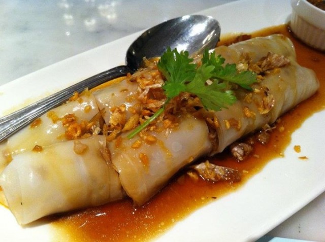 และดูดีมากๆ ตัวแผ่นก๋วยเตี๋ยวนุ่มหนึบ ไม่เละ ด้านในเป็นไส้หมูย่างหอมๆ น้ำราดก็อร่อย หอมกระเทียมเจียว