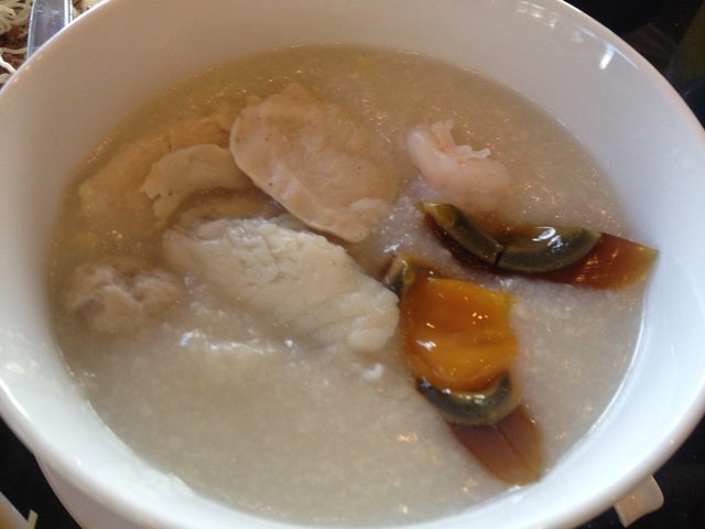 จานนี้เป็นโจ๊กจักรพรรดิสำหรับคุณลูกชาย มีทั้ง หมู กุ้ง ไก่ เนื้อปลา ไข่เยี่ยวม้า