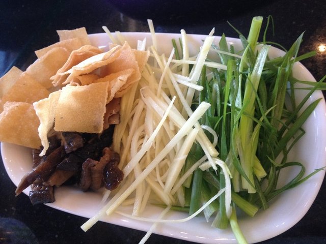 ส่วนเป็ดปักกิ่งทางร้านห่อให้เป็นคำๆ ดูเรียบร้อยน่ากินดีทีเดียว