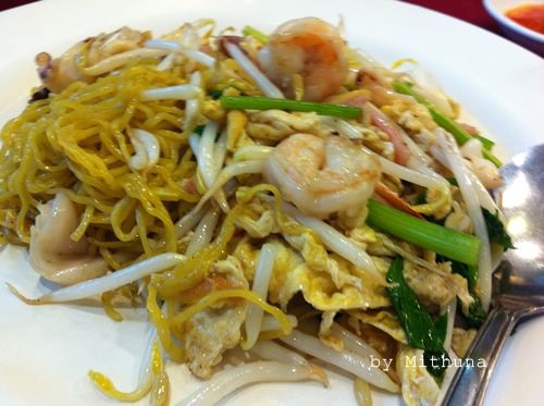 หมี่ผัด มาเสิร์ฟนี่แอบตกใจ เพราะมันเป็นหมี่เหลืองแบบบะหมี่ที่ขายในร้านก๋วยเตี๋ยว เราคิดว่าจะเป็นหมี่แบบหมี่ซั่ว หรือเส้นอื่นๆ ที่มันดีกว่านี้ ผัดมาค่อนข้างมัน และจืด พอเจอเส้นแบบบะหมี่เข้าไป หมดกันเลย