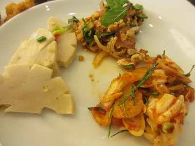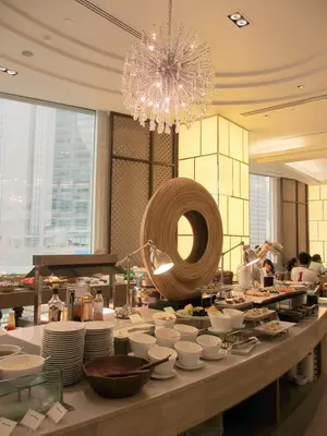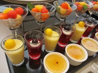 กลับมาอีกครั้งกับราคาโปรโมชั่น 350 กว่า บวกๆ จากการซื้อดีล คิดว่าถ้าไม่เกินราคานี้โอเคนะ ได้ทานซีฟู้ดสดๆ พร้อมน้ำจิ้มรสเด็ด อาหารญี่ปุ่นมีซาชิมิทูน่า และ แซลมอนสดดี ปูอัด ข้าวปั้นหน้าต่างๆ 4-5 อย่าง อาหารไทยมีพล่ากุ้งรสเด็ด ยำรวมมิตรทะเล ลาบไก่ ไก่ทอด อาหารอินเตอร์มีสลัดผักสดกับแฮมให้มิกซ์ได้ และสลัดแบบต่างๆที่ทำไว้ 2-3 อย่าง สตูเนื้อ ข้าวหน้าเป็ดก็มี สปาเก็ตตี้ก็สั่งได้ สั่งเป็นซอสครีมหอยแมลงภู่นิวซีแลนด์ตัวใหญ่มาก อร่อยใช้ได้เลย ของหวานแบบไทยก็มีข้าวเหนียวดำ กล้วยปิ้ง แบบอินเตอร์ก็มี มูส คัสตาร์ด ครีมบลูเล่ เยลลี่ พุดดิ้ง ของหวานที่นี่อร่อยทีเดียว แต่มีเค้กน้อยไปนิด 2 อย่างเอง แต่ก็เติมใหม่มาตลอดค่ะ