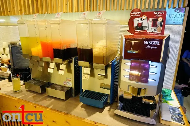 กาแฟเย็น/ร้อน ชาเย็น/ร้อน และผลไม้ อย่างแตงโมไว้ปิดมื้ออีกด้วย