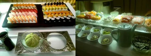 ตรงข้ามกับไลน์ซีฟู๊ด ก็จะเป็นไลน์อาหารญี่ปุ่น ที่มีเชฟยืนอยู่ตลอดคอยบริการทำให้สดๆ ใหม่ๆ