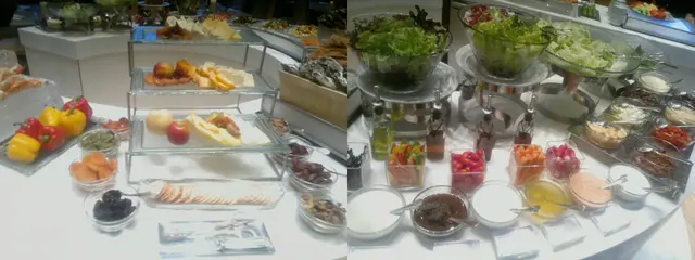 พอถึงเวลา 6 โมงปุ๊บ ก็ได้เวลาเข้าไปสำรวจไลน์อาหาร ตรงเคาท์เตอร์รูปเลขแปดนี่ เราจะเจอจองหวานก่อนเลย