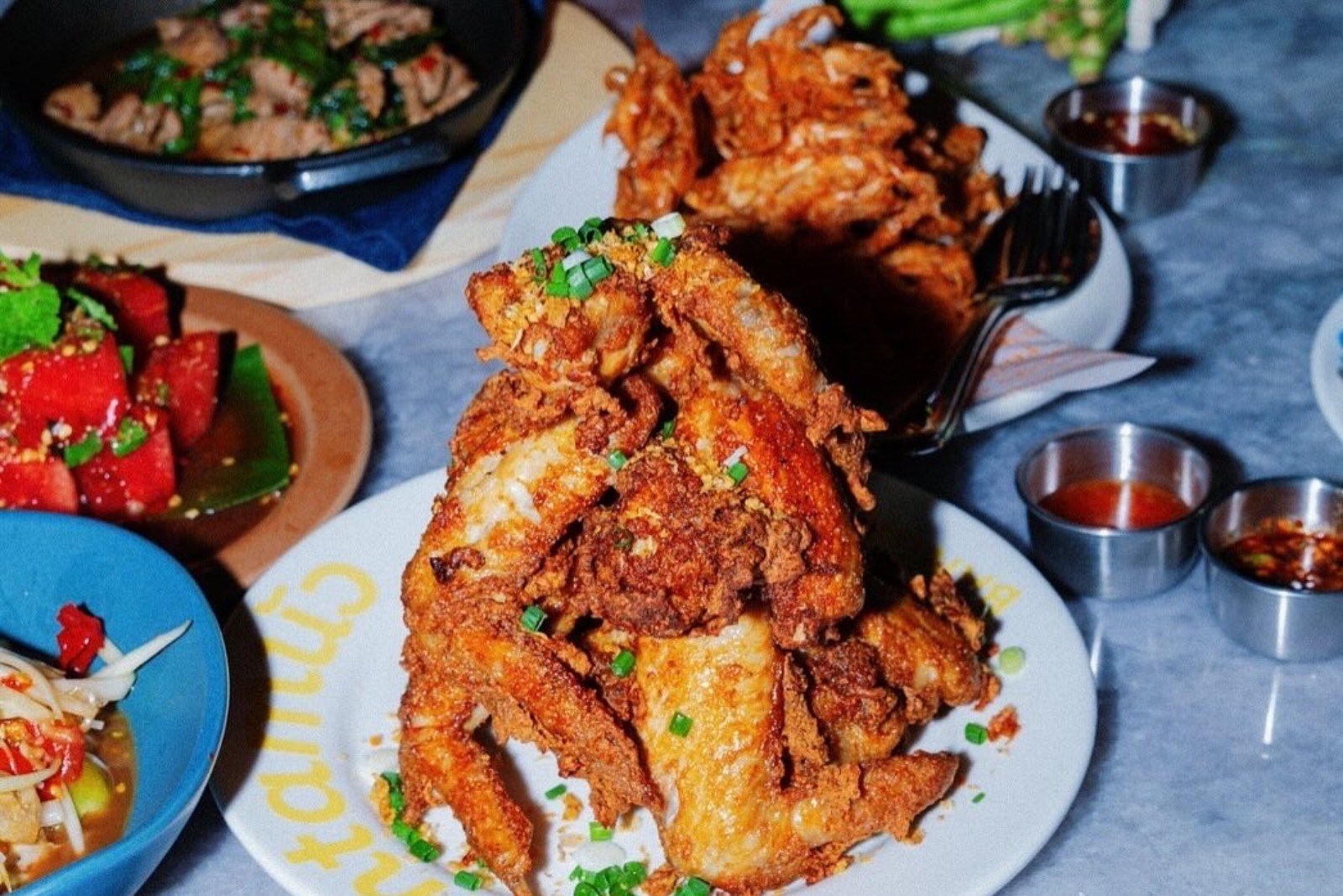 如果行到有啲餓,可以試呢間主打泰東北口味嘅餐廳Som Tam Nua,酸酸辣辣夠開胃。招牌係青木瓜沙律同炸雞,炸雞外脆內嫩,唔會乾;青木瓜沙律好香又夠酸,好開胃。食完又可以繼續行,附近仲有著名景點四面佛添~Som Tam Nua官方圖片