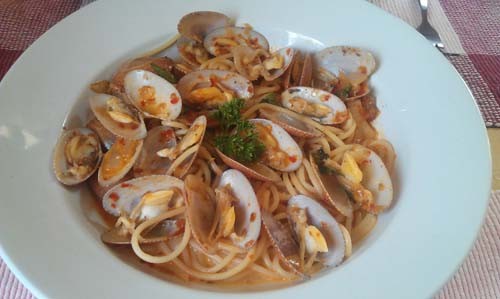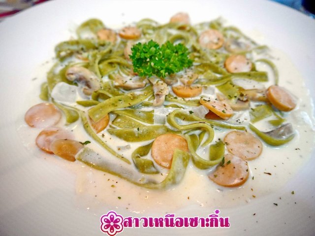 รีวิวนี่พิเศษมากๆ ไม่คิดว่าจะได้มีโอกาสมีทติ้งกับครอบครัวออนทัวร์ที่สาวเหนือติดตามมานานในพันทิป นั้นคือครอบครัวไกด์น้องหมา Doghall ซึ่งเที่ยวทั่วไทยมาแล้วมากมาย โอกาสนี่ทางครอบครัว Doghall ได้มีโอกาสขึ้นมาเที่ยวเชียงใหม่ สาวเหนือจึงรับหน้าที่หาร้านอาหารที่ต้อนรับน้องหมา ซึ่งบังเอิญร้านบ้านพาสต้าได้เสนอเข้ามาในแฟนเพจของสาวเหนือว่า ทางร้านยินดีต้อนรับสัตว์เลี้ยงด้วยห้องแอร์เป็นการส่วนตัว เพียงแต่โทรเข้ามาจองก่อนจะดีที่สุด เพราะหาก walk in เข้าไป ห้องอาจจะไม่ว่างได้สถานที่ตั้งของร้านอยู่แถวสี่แยกลิขิตชีวิน ฝั่งเดียวกับทางเทศบาลหนองจ๊อม (หรือตรงข้ามโชว์รูมโตโยต้า) ทางเข้ามีป้ายเขียนว่า วัดหนองไคร้ศรีทรายมูล ตอนขับรถเข้ามาครั้งแรกนึกว่าเป็นโรงเรียนกวดวิชา เพราะเหมือนบ้านพักอาศัยมากกว่าร้านอาหาร ตกแต่งภายในด้วยสีลูกกวาด อาคารแบ่งออกมาเป็นอาคาร A สำหรับลูกค้าที่มาเป็นกลุ่มเล็กและไม่มีสัตว์เลี้ยง ห้องจะตกแต่งสวยที่สุด และอาคาร B คือลูกค้ากลุ่มใหญ่ หรือมีสัตว์เลี้ยง เป็นห้องไม่ค่อยมีอะไรตกแต่งมากนัก เน้นพื้นที่ให้กว้างในการใช้งาน มีทีวีให้ดู แอร์เย็น รองรับแขกได้ราว 4 กลุ่มใหญ่ จะมีพนักงานเข้ามาดูแลเป็นช่วงๆละ 10-15 นาทีเมนูมีให้เลือกหลากหลายเป็นเล่มหนังสือเลย มีทั้งเซทเมนูสุดคุ้มประหยัดจับคู่ด้วย เชฟที่นี่มีเพียงแค่คนเดียว และใช้วัตถุดิบที่ไม่ก่อให้เกิดสารพิษในการปรุงอาหาร จึงต้องใช้เวลาปรุงอาหารพอสมควร ถ้าร้านจะแนะนำให้ปรุงเมนูทานเล่นก่อน เพราะจะทำเร็วที่สุด นอกจากนั้นยังมีการบอกระวังในเรื่องพาสต้าบางอย่างที่มีกลิ่นแรง เช่น พาสต้าดำกลิ่นหมึก หากลูกค้าไม่ชอบ ทางร้านไม่แนะนำให้สั่งมารับประทาน การบริการเป็นกันเองมาก โดยเฉพาะทางร้านเองก็มีน้องหมา ยังมีบริการพาสต้าสำหรับน้องหมาด้วยเมนูกินเล่นที่เราสั่งมาก่อนเป็นชุดเล็ก ประกอบด้วย ซาโมซ่ากล้วยหอม(อันที่คล้ายสามเหลี่ยม) กุ้งบอมส์ เฟรนฟราย ฟิชริงค์ และนัตเก็ตไก่ 109 บาท สำหรับทานได้ 1-2 คน ทอดร้อนๆกรอบๆ จิ้มกับน้ำจิ้มสามอย่าง (บ๊วยหวาน,ซาวครีม,ซอสมะเขือเทศ) หอมอร่อยมากค่ะซาโมซ่ากล้วยหอมอร่อยจนต้องขอรีเควสเป็นจานเดี่ยว ขนาดเล็ก (55 บาท) คราวนี้เสิร์ฟกับนมข้นหวาน เป็นแป้งทอดที่สอดไส้กล้วยหอมบด ที่น่าแปลกคือ ซาโมซ่านี่จิ้มกินกับน้ำจิ้มแบบคาวอันแรกก็อร่อย กินกับนมข้นหวานก็อร่อยในอีกแบบเหมือนกันMilk Tea Latta (60 บาท) เป็นเครื่องดื่มแนะนำของร้าน เห็นในภาพเป็นแก้วเล็ก...แต่ตอนมาเสิร์ฟนี่ ถ้วยใหญ่มาเลย (กว่าจะดื่มหมด ก็เช็คบิลพอดั) แถมใส่