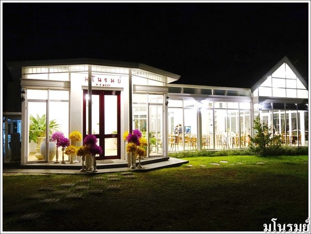 ร้านมโนรมย์ เชียงราย เป็นร้านอาหารขนาดใหญ่พอสมควรครับ มีโต๊ะนั่งหลายโซนมากๆ มีทั้งนั่งในห้องแอร์ที่ตกแต่งสไตล์บ้านขนมปังขิงแบบโมเดิร์นหน่อยๆ หรือว่าจะเป็นโซนเอาท์ดอร์ริมแม่น้ำกก หรือจะเป็นเอาท์ดอร์ในสวนแบบร่มรื่นๆก็มีครับ
