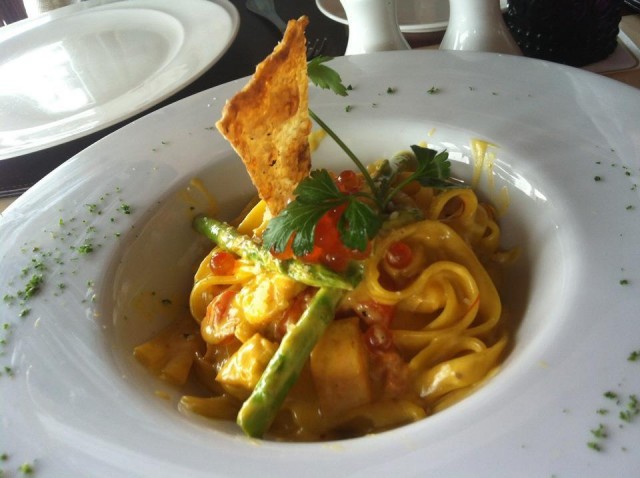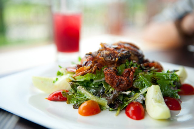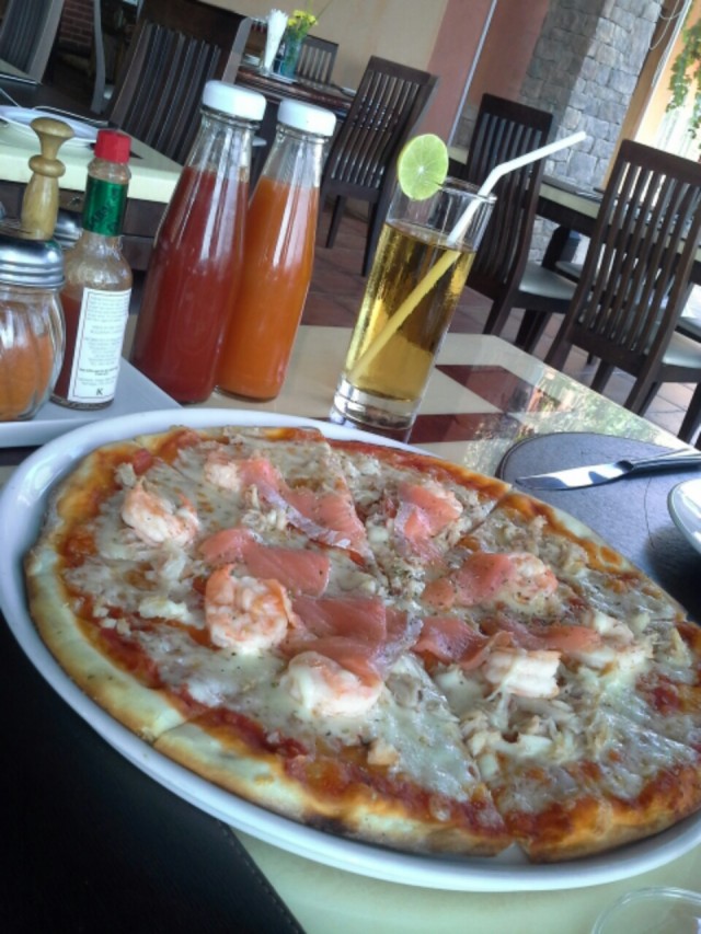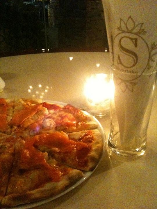 ก่อนจะไปแวะชมไร่องุ่น Silver lake ไร่ของดารารุ่นเก๋า-คุณสุพรรษา เนื่องภิรมย์ กองทัพต้องเดินด้วยท้อง เราแวะทานกลางวันที่ “Silver lake Wine & Grill” ร้านอาหารบรรยากาศแบบยุโรป ซึ่งอยู่ตรงข้ามกับทางเข้าไร่องุ่นนั่นเองตัวร้านอาหารจะสร้างแบบสไตล์ยุโรป เป็นผนังอิฐสีส้ม อยู่ท่ามกลางขุนเขา และฝั่งตรงข้ามเป็นทะเลสาบและไร่องุ่นดูสบายตา ส่วนใหญ่ลูกค้าจะเป็นชาวต่างชาติที่แวะมาเที่ยวไร่องุ่น อาหารที่นี่จะมีทั้งอาหารไทย และต่างประเทศ มีทั้งเสต็ก และพิซซ่า แต่ว่ากันว่า เมนูพิซซ่าที่นี่เด็ด เป็นพิซซ่าที่อบมาในเตาถ่าน เราลองเลือกสั่ง Pizza Hawaiian (390 บาท) เป็นแป้งพิซซ่าแบบบางกรอบ อบมาในเตาถ่าน โรยด้วย มะเขือเทศ แฮม สัปปะรด และมอสซาเรลล่าชีส ตัวแป้งพิซซ่าบางกรอบอร่อยค่ะ แต่ตัวหน้าที่โรยเราว่าใส่แฮมน้อยไปนิดค่ะ ถ้าใส่เครื่องจัดเต็มกว่านี้น่าจะฟินโค้ก (70 บาท) ชเวปส์มะนาวโซดา (70 บาท) ราคาสูงนิดนึงตามมาตรฐานร้านเน้นขายชาวต่างชาติค่ะ จริงๆ ร้านมีขายพวกไวน์ และเครื่องดื่มแอลกอฮอล์ลด้วยนะคะ แต่ว่าเราไม่ได้ลองโดยรวมอาหารอร่อยใช้ได้ค่ะ บรรยากาศร้านดีเลยทีเดียว แต่ราคาก็ค่อนข้างสูงนิดหนึ่งคะ…Read More