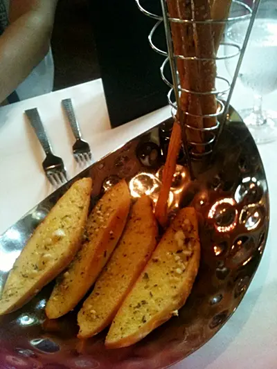 เริ่มด้วยขนมปังและน้ำมันมะกอกที่เสิร์ฟมาเรียกน้ำย่อยตามสไตล์อิตาเลี่ยน