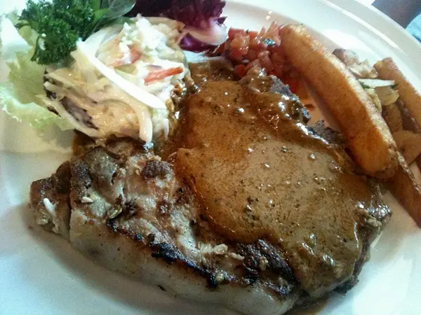Kurobuta Pork Chop สเต็กหมูดำชิ้นใหญ่โตมาก เห็นแล้วถึงกับจุกเลย แต่ด้วยความที่มันอร่อยสุกกำลังดี เนื้อนุ่มไม่เหนียวเคี้ยวสบายก็ทานได้เพลินๆเกลี้ยงจาน