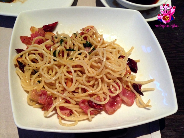 สปาเกตตี้ผัดพริกกระเทียมเบค่อน ผัดมาแห้ง ๆ ดี แต่เยอะไปหน่อย น่าจะทำจานเล็ก ๆ นะ กินแล้วอืดเลย ไม่อยากสั่งคาโบนาร่าเพราะกลัวเลี่ยน
