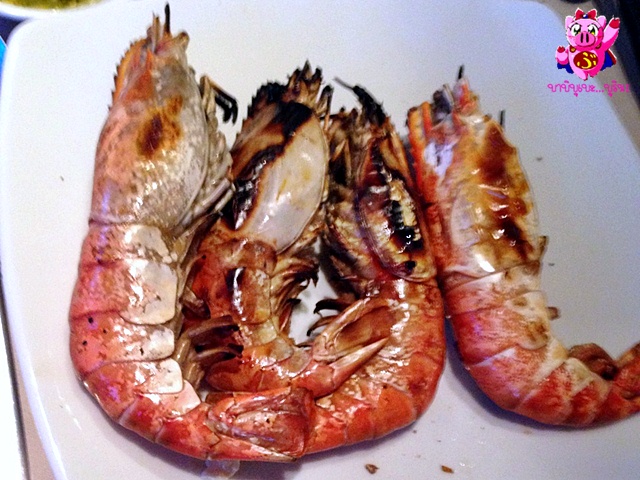 กุ้งย่างนี่สั่งไปหลายจานมาก จิ้มกับน้ำจิ้มซีฟู๊ด สุโค่ยค่า (แต่น้ำจิ้มซีฟู๊ดยังไม่จี๊ดจ๊าดเท่าไหร่)