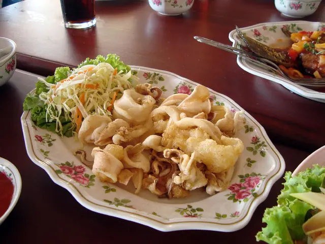 หุหุ ปลาหมึกมีไข่มาด้วย แน่น ๆ เลย ราดซอสพริก เคี้ยวมันส์มาก หนึบหนับ