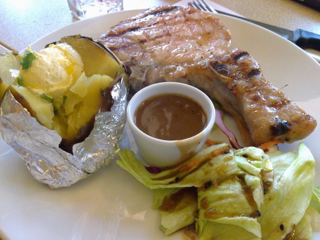 จานนี้พอร์คชอพ มาพร้อมกับมันอบ ของเราเอง หมูนุ่ม อร่อยดี