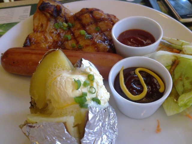 จานนี้ไส้กรอกหมู กับ ไก่ย่างสไปซี่ แอบชิมไปหน่อย ก็อร่อยดี