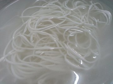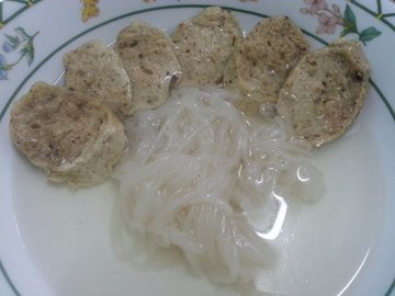 เดินมาร้านที่สาม จริงๆ ก็อยากซื้อหมูยอนะ จะได้ลองเปรียบเทียบ แต่ที่ซื้อมาจากร้านข้างๆ ก็กลัวกินไม่ทันระหว่างที่ดูนู่นนี่ สะดุดตากับ ก๋วยจั๊บแห้งเวียตนาม ใส่ในห่อ พร้อมด้วยผงน้ำซุปและเครื่องปรุง เนื่องจากติดใจจากที่ได้ลองมื้อเช้าที่โรงแรม ก็เลยลองซื้อกลับ ราคา 3 ห่อ 50 บ.บนห่อมีวิธีทำบอกเรียบร้อย มื้อเช้าวันนี้ ลองทำดูเลย แต่ไม่ค่อยสมประกอบเท่าไหร่ เพราะไม่มีผักเขียวๆ มาแนมวิธีทำก็ง่ายมากค่ะ แช่เส้นในน้ำให้นิ่ม จากนั้นนำเส้นไปต้มให้น้ำเดือด เส้นจะลอย แต่เส้นยังไม่ใสนะคะ ประมาณนี้จะได้เส้นเหนียวนุ่มกำลังดี อีกหม้อแยกกัน ก็ต้มน้ำใส่ผงน้ำซุปจากนั้นตักเฉพาะเส้นใส่ชาม ราดด้วยน้ำซุปที่ต้มไว้ จริงๆ ควรมีผักใส่ด้วย แต่ไม่มีอะ 555 แล้วแปะด้วยหมูยอจากร้านข้างๆ เอ๊า เวรกรรม ดูรูปลืมใส่เครื่องอื่นๆ ในห่ออีก 555ลองชิม รสชาติกำลังดีเลยค่ะ เส้นเหนียวนุ่ม น้ำซุปหวานนำ เค็มนิดๆ ทานแกล้มหมูยอ เข้ากันสุดๆ ชอบค่ะ …Read More