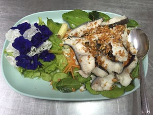 ขาปู ร้านนี้แกะมาให้กินได้ง่ายๆ เนื้อหวานนิ่มมากค่ะมาริมแม่น้ำโขงทั้งทีก็ต้องกินปลาแม่น้ำโขงสักหน่อย จานนี้ลาบปลาบึกค่ะ เนื้อปลาหนาหนึบ รสไม่จัดเท่าไร พอดีน้องที่มาด้วยเค้าทานรสจัดไม่ได้ เลยเป็นรสนัวๆ เนียๆ สำหรับฉันอย่าทำอาหารหวานเว่อร์ก็อร่อยแล้ว อิอิลาบต้องกินกับข้าวเหนียวดอกอัญชัญค่ะ สีสวยดี ส่วนรสชาติก็เหมือนข้าวเหนียวสีขาวค่ะ ไม่แตกต่างมาพร้อมผักสดและดอกไม้สด กินแนมไปกันลาบ เข้ากั๊น เข้ากัน ต้มยำปลาคังน้ำใส เนื้อปลาสดนิ่ม หนังหนาอร่อย น้ำซุปต้มยำรสชาติกำลังพอดีนี่โอ่งอบไก่ค่ะ อลังการมาก เห็นแล้วอดที่จะสั่งไก่ไม่ได้ ท้องแตกกันแน่วันนี้ช้านนนนนเนื้อไก่นิ่มๆ มาแล้วจ้า เนื้อไม่เหนียวไม่เละ กำลังพอดีมาก รสชาติจืดไปนิ๊สสสสสส แต่ยังอยู่ในเกณฑ์อร่อยค่ะค่าเสียหาย…Read More