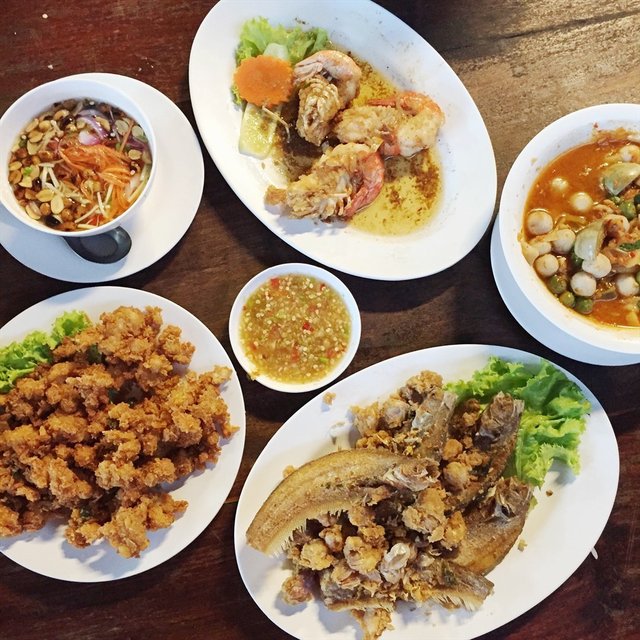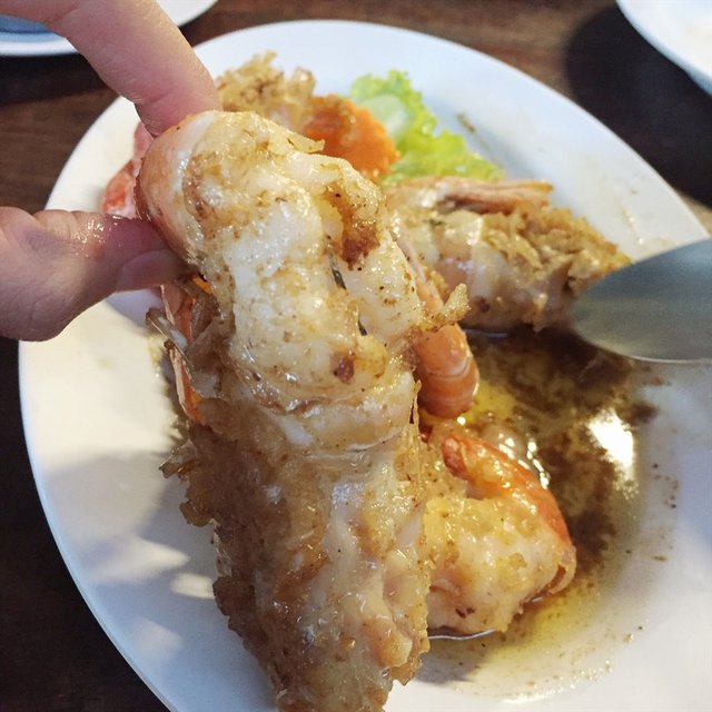 เมนูโปรดที่บ้านเราสั่งกินประจำ เมนูแรกกุ้งทอดเกลือ เสียดายวันที่ไปกินตรงกันเทศกาล คนแน่นร้าน กุ้งเหลือแค่size กลาง สั่งแบบครึ่งกิโล จานนี้รสชาติออกเค็มๆมันๆ ต้องกินคลุกกับข้าวสวยร้อนๆ พร้อมกุ้งกับน้ำจิ้มซีฟู้ด ยอมอ้วนเลยจ้า 😁