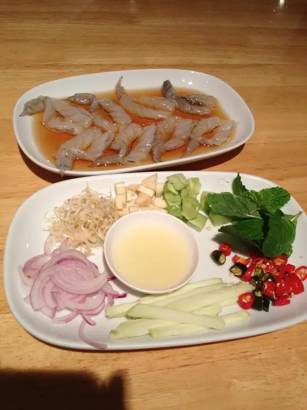 เริ่มต้นกันด้วยอาหารจานโปรดของเราเป็นกุ้งแช่น้ำปลา ของที่แหลมเจริญจะเป็นกุ้งแช่มาในน้ำปลาจริงๆ