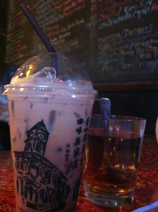 กาแฟเย็นพร้อมชาร้อนล้างปาก