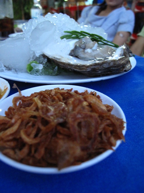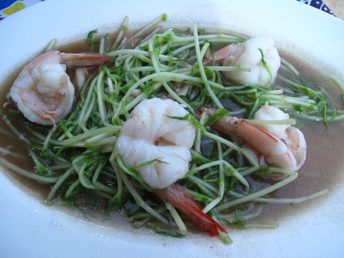 อาหารที่พลาดไม่ได้เวลาไปภูเก็ตก็ต้องหอยชักตีนเลย หาทานในกรุงไม่ได้ จานนี้ก็โอเคค่ะหอยดึงง่ายคงจะสด น้ำจิ้มซีฟู๊ดแซ่บ ส่วนส้มตำเฉยๆ โป๊ะแตกปลามันมันไม่ค่อยสดเท่าไหร่ มีที่ดีอีกอย่างคือหอยนางรมสดมากเพื่อนตั้งสั่งเบิ้ล 2 จานเลย แล้วก็ผักอะไรซักอย่างจำไม่ได้ผัดกุ้งรสเข้มอร่อย บริการก็โอเค