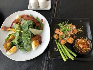 ร้านบรรยากาศดีๆ ในหัวหิน ต้องร้านนี้เลย Oceanside Beach Club ของ โรงแรมพุทธรักษาตัวร้านจะอยู่ในโรงแรมริมหาด จอดรถด้านหน้าโรงแรมได้เลย เมื่อเดินเข้ามาจะเจอตัวห้องอาหารเลยอยู่ริมหาดดภายในร้านบรรยากาศดีมาก ถ้าอยากได้โต๊ะริมต้องโทรจองล่วงหน้า และทางร้านกำหนดเวลาทานด้วยค่ะ แต่ถ้าโต๊ะด้านในถัดลงมา นั่งทานได้ไม่มีกำหนดเวลา เมนูอาหารในร้านมีทั้ง อาหารไทยและอาหารฝรั่ง รสชาติอาหารโอเคค่ะ แต่วันนั้นลมพัดแรงมาก วางอะไรบนโต๊ะก็ปลิวหมดเลย5555 ร้านมีคิด vat และ เซอร์วิสชาร์จค่ะ …Read More