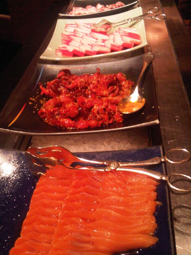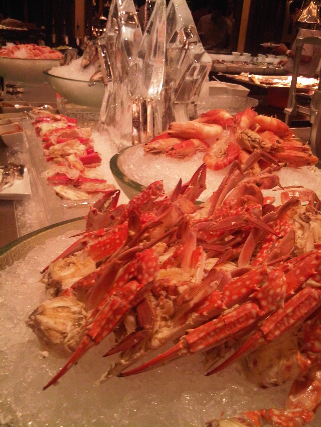 Romantic Dinner @ Marriot Cafe'This restaurant locates in Marriot Hotel, Sukumwit Road.The atmosphere around the hotel is decorated for Christmas and New Year Celebration.There are various light and Christmas Tree.There are many people here, almost of them come here for business and family dinner.Most of clients are foreigners.This time I visit here, it's an international dinner buffet.Which include all food selections and coffee / tea for drinks.There are Japanese Food, Seafood, Western menu, Salad, Thai food, and Dessert.Japanese food composes of various type of raw meat, for example, Tuna, Salmon, Eel,Crab Stick, Seaweed and Octopus, which serve as Sushi and Sashimi.In the Western Style corner, you will see many fish menu; fried, oyster, grilled, etc.There are also stir fried vegetable with butter, various bread, and cheese.The make to order spaghetti is one of the signature here. There are many sauces such as Cabonara, and Tomato Sauce.In the middle of this restaurant, there are a big shelf with full of seafood.The high light is Giant Crab Leg, shrimp, and oyster which serve on ice.There are several types of sauces.Moreover, there are Thai food corner for foreigners. Such as Musman, Pla Koong.Its taste is not too hot to try !The last but not less is dessert. I really like its home-made ice-cream; coconut, chocolate, vanilla, strawberry, and mocha flavor. The chocolate fountain around withfresh fruit and muskmelon.There are Thai desserts and western menu; various cake like Tong-Yod, Look-Choob, Tiramitsu, Chocolate Cake, Apple Crumble, Chocolate Mooses, Mixed Berry Shot, etc.You also can enjoy free water, coffee and tea here. It included in the set.The over all taste is really good with high quality ingredients.The price is rather high, but if you have member card, it's much cheaper.The service is nice, the staff are very kindly and helpful.The location is easy to access while the atmosphere is cool.…Read More