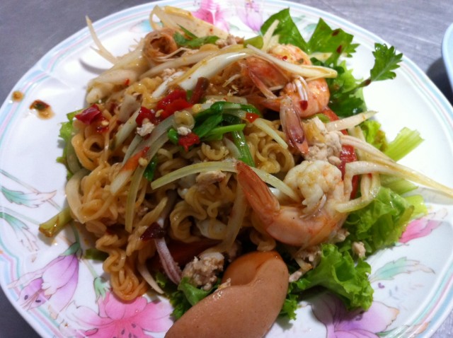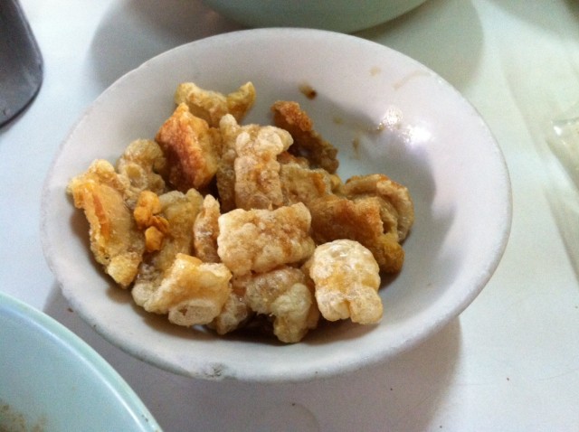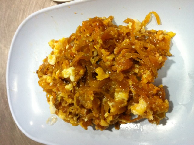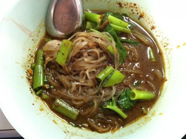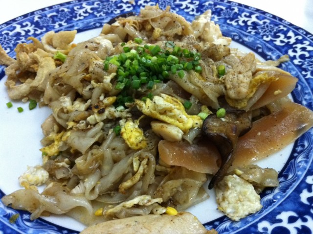 แล้วก็มาถึงคั่วไก่ที่ผมสั่งมา เป็นเส้นใหญ่นะ มีปลาหมึกดองด้วย รสชาดอร่อยไม่แพ้คั่วไก่ที่อื่นเลย แต่เดี๋ยว! เค้าจะมีจุดเด่นตรงที่ ใส่กากหมู กับ เห็ดหอม มาให้ด้วยนะ เวลาเคี้ยวโดนกากหมูเนี่ย รู้สึกสนุกมาก 555 เลยหาซะทั่วจานเลย ใส่มาประมาณนึงเลยล่ะ