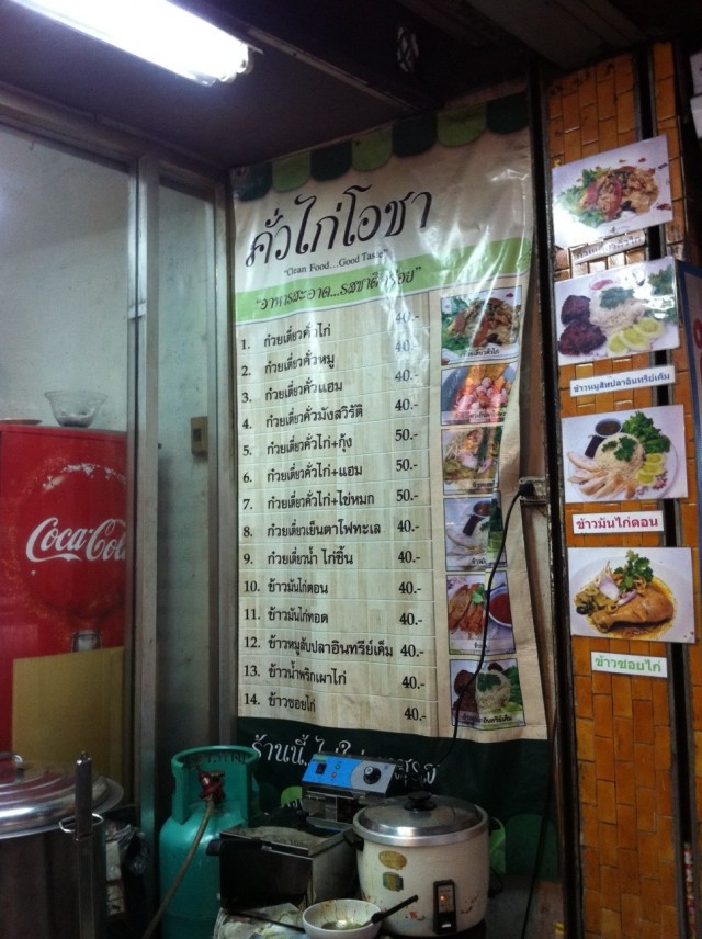 คั่วไก่โอชา เป็นร้านที่ผมเห็นมานานแล้ว ซึ่งคาดว่าหลายๆคนที่ต้องขึ้น Bts สะพานควายอยู่ทุกวัน ก็คงจะสังเกตเห็นป้ายไวนิลของร้าน ที่ติดกันให้เห็นบริเวณจุดซื้อบัตรโดยสาร ซึ่งตัวร้านนั้น ลงบันได Bts มาก็จะเจอเลยฮะ ตามภาพแรกเลย ฝั่ง Big C นะหน้าร้านก็จะมีเมนูใหญ่ๆติดไว้เลย ผมว่าร้านนี้น่าสงสาร เพราะทางลง Bts มันบังหน้าร้านซะมิดเลย ลูกค้าคงหายไปเยอะ แต่ก็น่าจะได้ลูกค้าที่หิวๆเดินลงมาจาก Bts เนี่ยแหละ 555 ฉะนั้น เค้าเลยต้องทำทุกทางเพื่อให้คนเห็นร้าน ทั้งติดป้ายไวนิลไว้ใกล้บนสถานี ฯลฯ แต่ที่สำคัญสุดที่ทำให้ผมอยากมากินอีก คืออัธยาศัยที่ดีของป้าเจ้าของร้านฮะ ตอนกินอยู่ แกก็เดินมาถามว่า ปั่นจักรยานมาจากไหน วันหลังมากินร้านป้าอีกสิ มีข้าวซอยด้วยนะ ชอบมั๊ย?