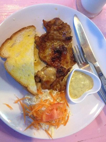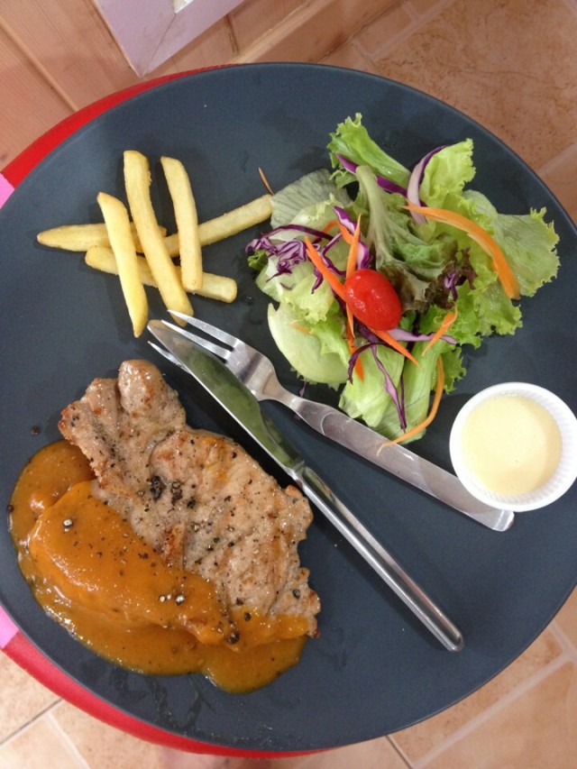 ร้านที่เราได้มากินในวันนี้มี่อว่าร้านแวะดื่มนม 2 เป็นร้านที่ไม่ได้ขายแค่นมอย่างเดียว ขายทั้งอาหารหลักจะขายเปนสเต็กเป็นหลัก มีขายหลายๆขายคนพลุกพล่านมักจะมาสังสรรค์กันอยู่เปนประจำ เมนูที่เราสั่งมาในวันนี้เป็นอาหารเย็นของเรา เป็นสเต็กไก่ย่าง รสชาติของเสต็กไก่ก็เนื้อนุ่ม มีรสชาติที่ออหวาน มีกลิ่หอมเรื่องพริกไทย หนังก็ไหม้ๆอร่อยดีนะ ทานคู่กับซอสพริก ทะเขือเทศ เฟรนฟราย รสชาติดีอร่อย ที่สำคัญราคาไม่แพงเรย ไม่ถึง 100 บาทอิ่มและอร่่อยคุ้มๆ บรรยากาศร้านก็โอเค แออัดไปนิดนึงนะ พนักงานบริการวุ่นวายไปหน่อย …Read More