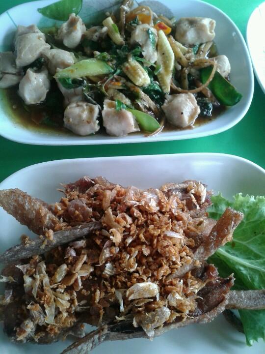 วันนี้เรามากินกันในตัวอำเภอเมืองจังหวัดนครนายกกัน กับร้านที่มีชื่อว่า ครัวคุ้งนำ กับร้านอาหารบรรยากาศดีๆ ที่ติดอยู่กับริมแม่น้ำมีความร่มรื่น น่านั่งอากาศลมพัดเย็นสบาย เมนูที่เราสั่งมากินในวันนี้เป็นลูกชิ้นปลากรายผัดฉ่า ปลาทอดกระเทียม อาหารร้านนี้จะเปนอาหารรสชาติบ้านๆเหมือนทำกินเองดี รสชาติถูกปาก ลูกชิ้นปลากรายเนื้อแน่นเด้ง ผัดฉ่ามีรสชาติเผ็ดร้อนอร่อยดี ส่วนปลาทอดกรอบนั้นมีความเค็มโดยตัวของปลาตัวเล็กกินได้ทั้งตัวเรย อร่อยๆ นั่งกินข้วชมบรรยากาศริมแม่น้ำสวยๆไป เยี่ยยมไปเลย…Read More