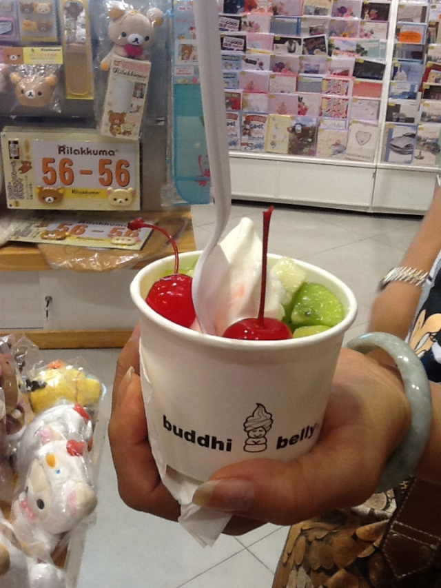 บุดดี้เบลลี่เปนไอติมที่ทำจากโยเกิดเนื้อดีค่ะ ปกติเราไม่ค่อยชอบกินโยเกิดนักแต่ร้านนี้ทำได้อร่อยกลมกล่อมมาก เนื้อค่อนข้างแน่น หวานนิดเปรี้ยวนิด ไม่ได้เปรี้ยวเว่อแหยะไปเราเลือกท้อปปิ้งเปนเชอรี่ไม่ได้้ทานค่ะแต่คุนแม่ทานบอกว่าชอบมาก นี่กินมาสองอาทิดติดแล้วนะ อาทิดละถ้วยนะคะ อิอิ แล้วก้กีวีค่ะ เราว่าสดดีค่ะ ทานด้วยกันแล้วอร่อยดีนะคะถ้วยนี้ 100 อาจแพงไปหน่อยนะ สำหรับเรา รุ้สึกว่าแค่โยเกิดก้ 65 แล้วท้อปปิ้งมี 20 ก่ะ 25 อ่ะ แต่จำได้จ่ายไป100 บาท แพงมากๆเรยนะคะ แต่ก้อร่อยดีค่าการเดินทางง่ายสุดๆ สยามพารากอนหน้าทางเข้าชั้นบีเทรนนะคะบริการพนักงานดีมากเรยค่อยๆอธิบาย เพราะร้านนี้ไม่ได้ทานบ่อย งงเรื่องราคาบรรยากาศก้โอเพ่นมีที่ให้นั่งหลายโต้ะเหมือนกัน เราถนัดเดินไปกินไปมากกว่าค่า…Read More