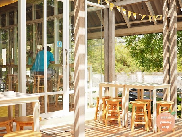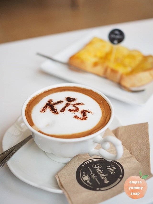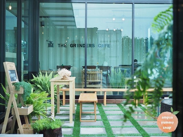 ร้าน the grinder cafe เป็น cafe เปิดใหม่ในย่านถนนกาญจนาภิเษกช่วงใกล้ซ.สวนผักค่ะ โครงสร้างร้านที่เห็นภายนอกเด่นชัด คือตู้คอนเทนเนอร์สีขาวสะอาดวางเป็นกล่องๆตั้งอยู่เรียงราย เรียกว่าสะดุดตาเมื่อขับผ่านจากถนนใหญ่เลยค่ะ ในร้านมีเมนูให้บริการค่อนข้างหลากหลายทั้ง กาแฟ ขนมเบเกอรี่ และไอศครีม เรียกว่าเป็นร้านที่เหมาะกับทุกวัยในครอบครัวเลยค่ะ นอกจากนี้จุดเด่นที่ดึงดูดให้คนแวะเวียนกันมาเยี่ยมชมคงเป็นเพราะเจ้าของร้านเป็นสาวกมูมิ่นตัวยงค่ะ ทำให้ในร้านตกแต่งด้วยมูมิ่นอยู่หลายมุมเลย เรียกว่าสาวกมูมิ่นผ่านมาเห็นมีกรี๊ดค่ะ=-= สถานที่ตั้ง และการเดินทาง =-=ร้านตั้งอยู่ในโครงการชวนชื่นการ์เด้นริมถนนกาญจนาภิเษกค่ะ โดยตัวร้าน The Grinder cafe จะตั้งอยู่ที่หน้าโครงการติดถนนใหญ่เลยค่ะ ส่วนการเดินทางมา ถ้าเริ่มจากกนนนครอินทร์ ให้เลี้ยวซ้ายเข้าถนนกาญจนาภิเษก มุ่งหน้าบรมราชชนนี เมื่อเห็นปั๊มแก๊ส NGV ของปตท.อยู่ลิบๆ ให้เตรียมชิดซ้ายเลยค่ะ เพราะตัวทางเข้าร้านอยู่ก่อนถึงปั๊มนิดเดียวค่ะ=-= บรรยกาศร้าน =-=เห็นเป็นกล่องๆคอนเทนเนอร์แบบนี้ใช่ว่าจะอึดอัด นั่งไม่สบายนะ เพราะทางร้านจัดร้านมาค่อนข้างโปร่ง แสงส่องสว่างถึง และมีมุมเก้าอี้น่ารักให้เลือกอยู่หลายมุม เลยทำให้สามารถนั่งชิลๆจิบชา-กาแฟได้สบายๆเลยค่ะ ช่วงเสาร์อาทิตย์คนจะค่อนข้างเยอะ ทางร้านมีเปิดบริการชั้นสองเพิ่มเติมเพื่อรองรับลูกค้าที่เพิ่มขึ้นค่ะ (แอมไปช่วงวันธรรมดา เลยไม่ได้เก็บภาพชั้นสองมาฝากนะคะ)=-= เมนูที่ชิม =-=เนื่องจากแอมแวะไปทานช่วงเช้าก่อนไปทำงาน เลยสั่งเมนูด่วนๆ เล็กๆน้อยๆ มานั่งทานนะคะ- cappuccino (50B) ☆☆☆☆ ที่นี่ใช้โรยผงโกโก้ทำลวดลายบนกาแฟค่ะ ออกมาเป็นลายคำว่า kiss น่ารักมุมิ ตัวกาแฟแอมลองตัวเกรด ธรรมดารสชาติใช้ได้ค่ะ- ขนมปังปิ้งทาแยมส้ม (20B) ☆☆☆ ขนมปังปิ้งทาเนย ทาแยมส้ม ตัวนี้รสชาติโอเค ใช้ได้ แต่ก็ไม่น่าตื่นเต้นเท่าไรนะ ทั่วๆไปอ่ะ- premium espresso (50B) ตัวนี้เป็นเมล็ดกาแฟพรีเมี่ยมเลยแพงกว่าปกติค่ะ เป็น blend ของที่ร้าน แอมไม่ได้ชิม ของคนที่ไปด้วยค่ะโดยรวมเป็นร้านกาแฟที่ราคากลางๆ ไม่แรงมาก แต่จุดเด่นคือบรรยกาศของร้านที่ตกแต่งได้น่ารักรื่นรมย์ รวมทั้งเจ้ามูมิ่นตัวเก่งที่วางอยู่รอบร้านเป็นอะไรที่น่าดึงดูดให้ลูกค้าเข้าไปถ่ายรูปเล่นด้วยมากค่ะ จริงๆที่ร้านมีเมนูเบเกอรี่ที่น่าทานอีกหลายเมนูเลย ทั้ง toast /waffle/ lava cake แต่ติดว่าคราวนี้เป็นมื้อเร่งรีไปหน่อย คราวหน้าคิดว่าน่าจะได้มาลองและเขียนรีวิวเพิ่มค่ะ…Read More