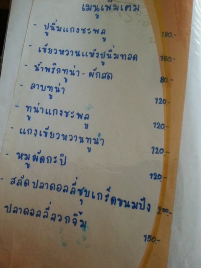 ตอนช่วงปีใหม่กลับบ้านนอกมาครับ ไปเยี่ยมที่บ้านมา เลยมาทานข้าวกับที่บ้านที่ร้านล้านช้างร้านนี้มีอาหารอร่ยเยอะแยะให้เลือกเลยครับ สั่งมาทั้งหมด 4 อย่างปลากระพงทอดน้ำปลา ปลาตัวโต เนื้อเยอะ ทอดมากรอบๆ ราดน้ำปลา ทานคู่กับน้ำจิ้มสุดเด็ด จานนี้พลาดไม่ได้ครับกะหล่ำปลีผัดน้ำปลา ที่นี่อร่อยมาก กะหล่ำปลีไม่เละ ไม่เค็มเกินไป ทานกับข้าวสวยร้อนๆ สุดยอดครับปูนิ่มผัดผงกะหรี่ ปูนิ่มตัวโตๆผัดผงกะหรี่รสจัดจ้าน ทานคู่กับพริกน้ำปลาต้มยำกุ้งใส่มะพร้าวอ่อน กุ้งตัวโตๆนำมาทำต้มยำรสเด็ด พร้อมเนื้อมะพร้าวอ่อน เมนูนี้ห้ามพลาดครับร้านนี้เคาะไป 9/10…Read More