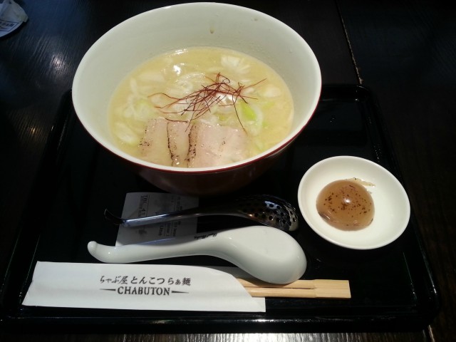 มาเดินเล่นหาอะไรกินกับเพื่อนที่ Central Ladprao ครับ กิน Chabuton ละกัน ที่นี่มีที่นั่งเยอะดีครับ ว่าแล้วก็สั่งเลยดีกว่า จานแรกเป็นราเมนในน้ำซุปกระดูกหมู พร้อมหมูชิ้นโต น้ำซุปเข้มข้น มาพร้อมเส้นราเมนเหนียวนุ่มจานที่สองเป็นราเมนผสมคอลลาเจน ครับ ก้อนสีน้ำตาลคือคอลลาเจนครับ ก่อนทานก็จะตักมาละลายในน้ำซุป แล้วก็ทานได้เลยพอทานปุ๊บหน้าตึงปั๊บร้านนี้เคาะไป 8.5/10…Read More