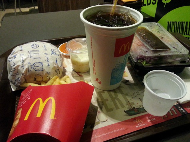 วันนี้มาทานมื้อเที่ยงกันอย่างเร่งด่วนครับ สั่งไปเลย เบอร์เกอรืหมู เฟรชฟรายขนาดกลาง น้ำอัดลม และ สลัดครับไม่ต้องพูดอะไรมากสำหรับเฟรชฟรายของที่นี่ คนกินเยอะ อร่อย กรอบ กินแล้วหยุดไม่ได้เลยทีเดียวสลัดมีผักมากมายหลายชนิดครับ ราดน้ำสลัดแบบญี่ปุ่น อิ่มเพื่อสุขภาพเบอร์เกอรืหมู ชิ้นขนาดพอดี แต่หมุเล็กไปหน่อยครับ น่าจะเพิ่มให้ชิ้นใหญ่กว่านี้มื้อนี้ใช้เวลากิน 15 นาที เคาะไป 7/10 คะแนนครับ…Read More