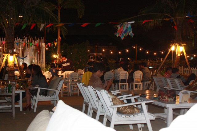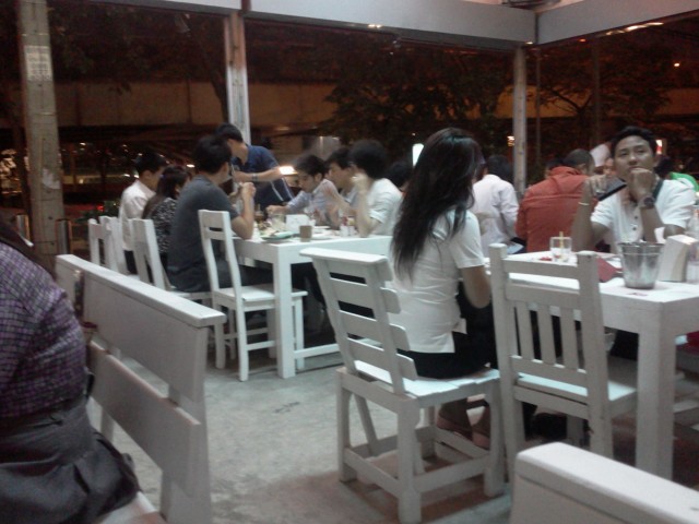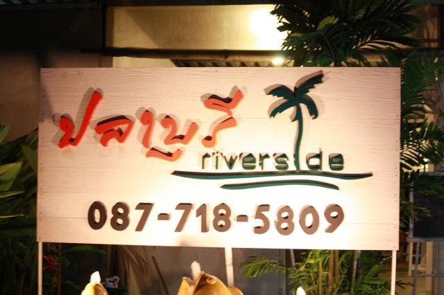 เราขับรถออกมาเส้นทางพระราม 3 เลยวัดปริยวาสมาเล็กน้อย เค้าว่ากันว่ามีร้านบรรยากาศติดริมแม่น้ำอยู่ที่อาหารอร่อย ดนตรีเพราะ พอเลยวัดไปนิดนึงก็เจอซอยหาไม่ยากมีชื่อร้านเขียนเห็นชัดเจน เข้าไปจนสุดก็จะจเอกับป้ายนี้ บรรยากาศร้านดีมาก + กับวันที่เราไปเป็นวันที่อากาศเย็นๆ โรแมนติกมว๊ากกก ไปถึงก็ได้โต๊ะริมน้ำเลย โต๊ะมองเห็นสะพานแขวนด้วย บรรยากาศโต๊ะนั่งจะอยู่บนหาดทราย คล้ายๆกับร้านอาหารริมทะเล ใครเมาๆ อาจจะลืมไปคิดว่าอยู่ริมทะเลแล้วเดินลงไปเล่นน้ำก็ได้ แต่ความจริงแล้วคิอแม่น้ำเจ้าพระยา